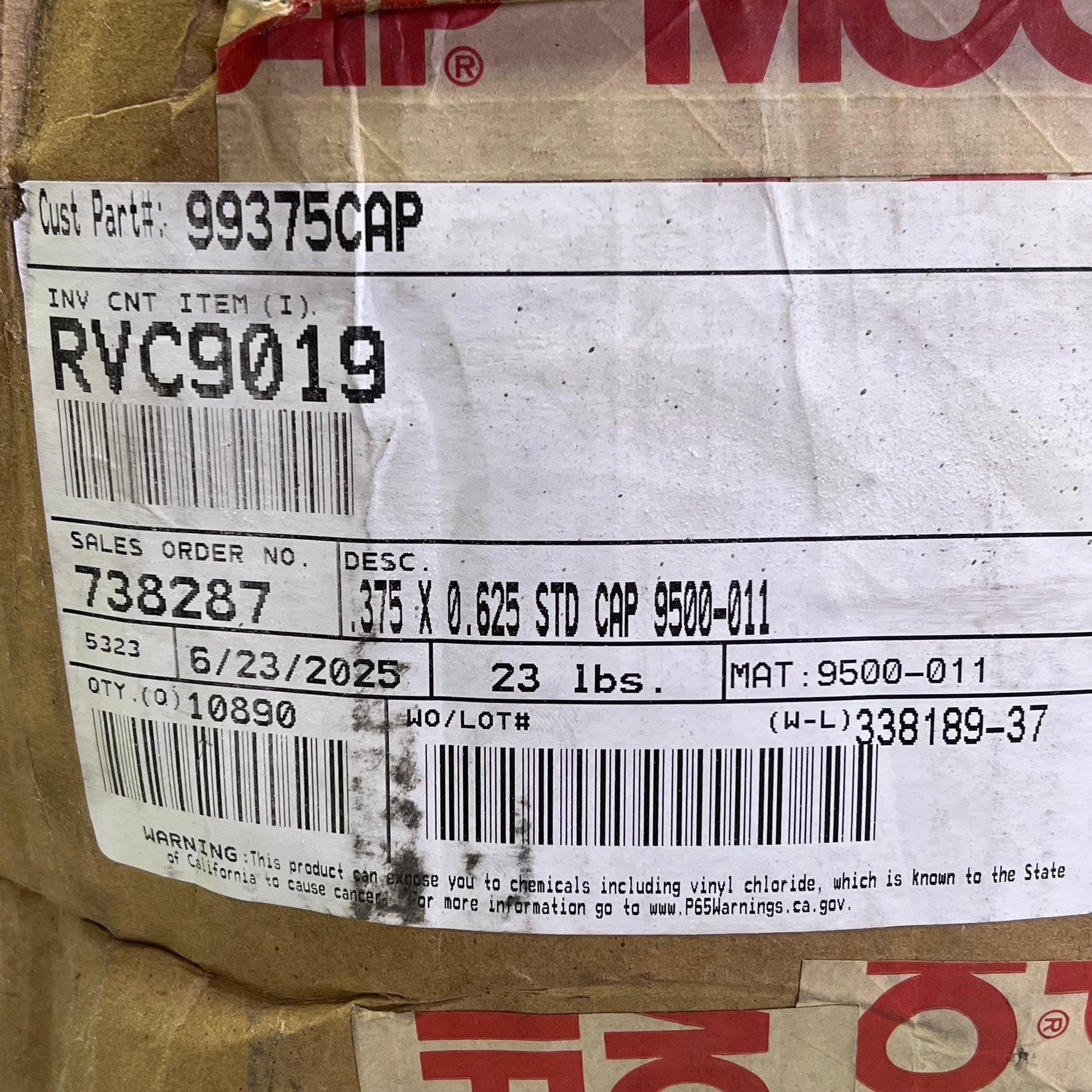 (10,890 PACK) Vinyl STD Cap .325x0.625 Red 9500-011