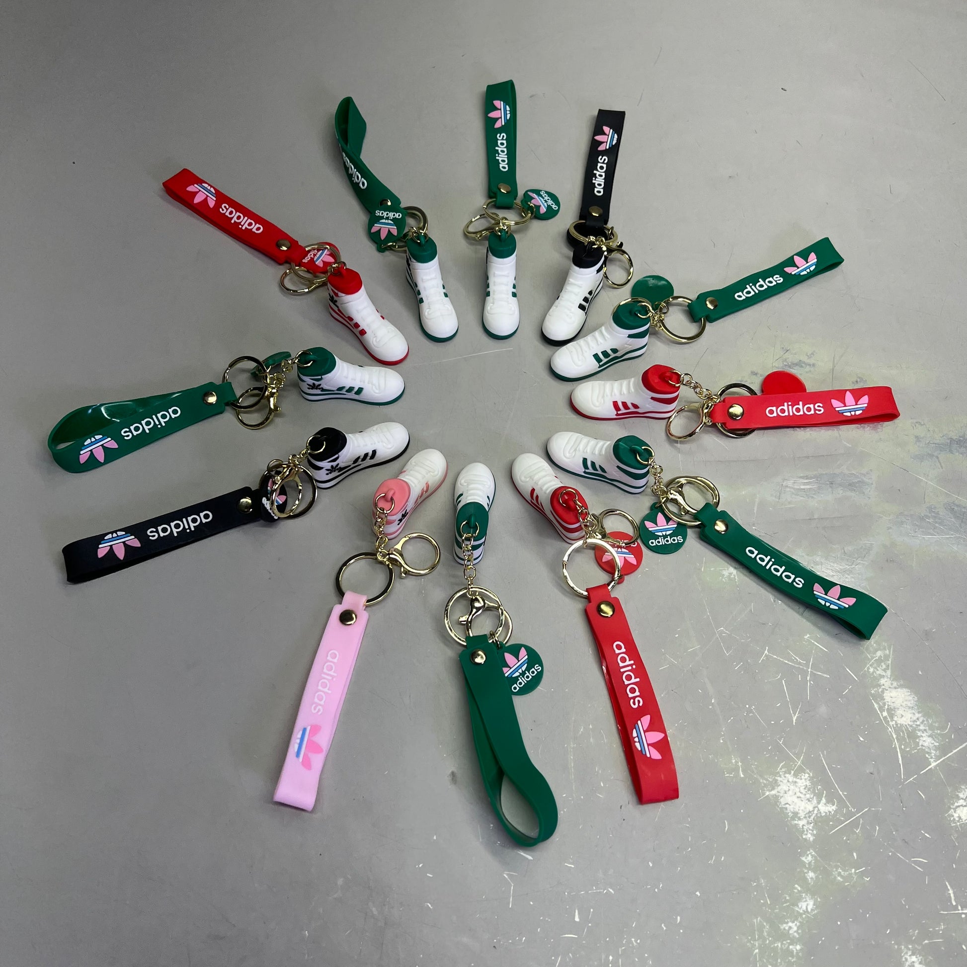 ADIDAS (12 PACK) Assorted Hightop Sneakers Shoe Keychains w/ Wrist Band 7"