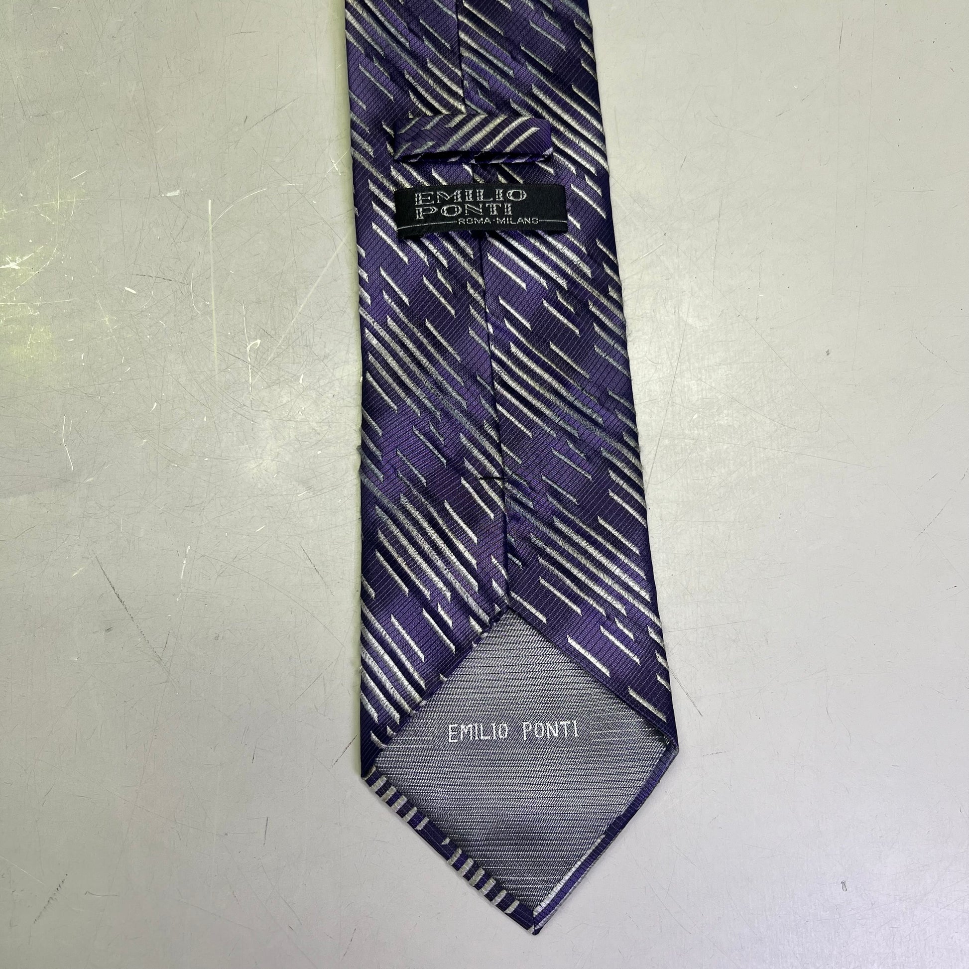 EMILIO PONTI 100% Silk Patterned Suit Tie 60" Purple/Grey (Pre-Owned)