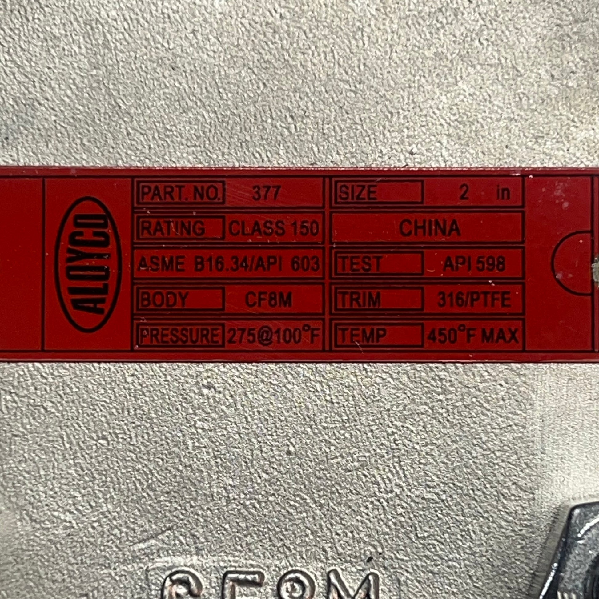 ALOYCO Integral Seat Swing Check Valve 150 Flange API Trim 10 316SS 2" 377C02020