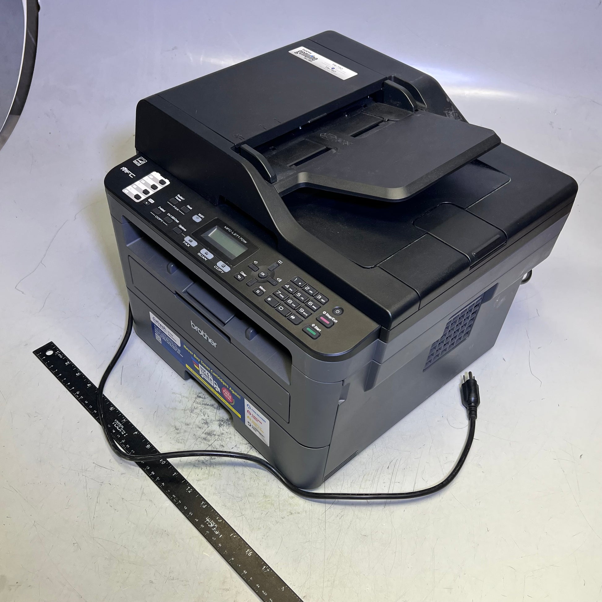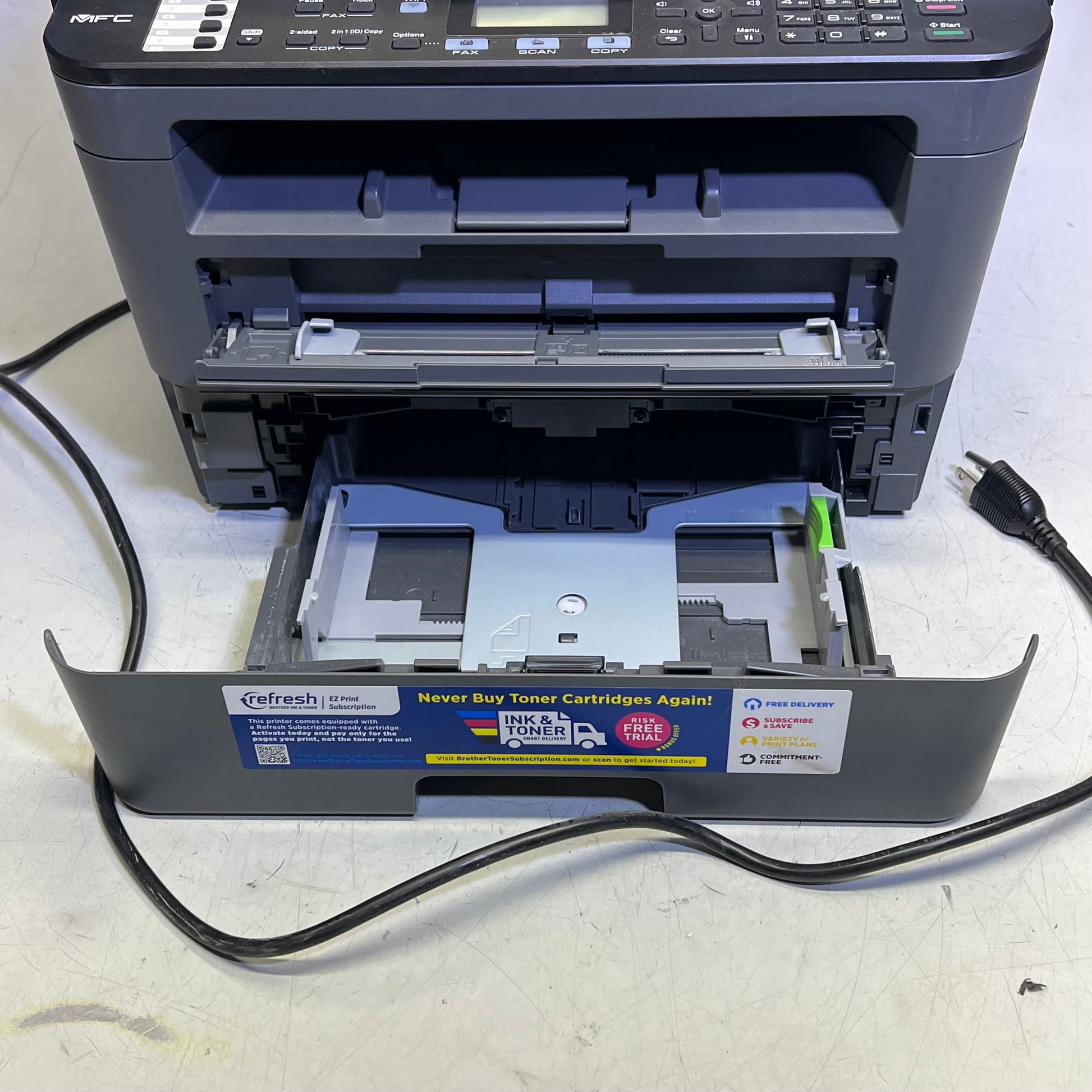 Description: All in One Laser Multifunction Printer, Compact Monochrome, Print Copy Scan Fax, Auto Duplex Printing, Wireless, 2 line LCD Display, Mobile Printing, ADF, 32 ppm