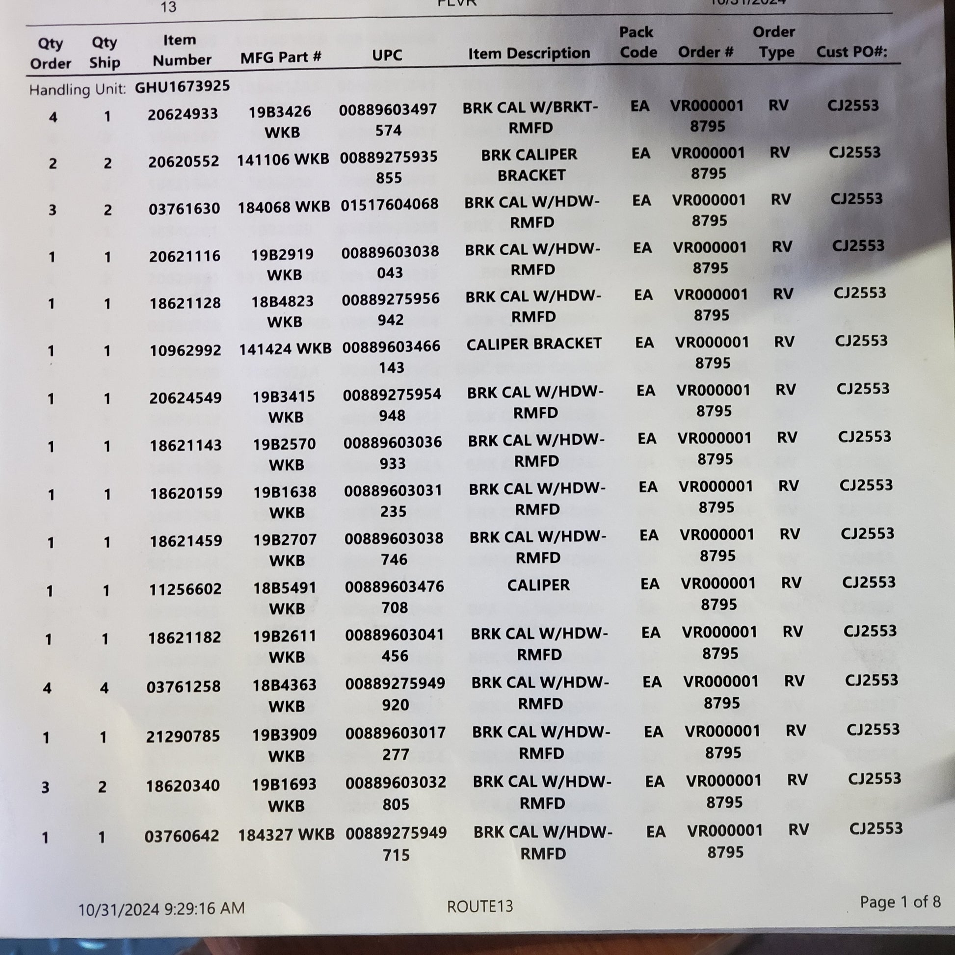 ZA@ Pallet of CAR QUEST (Two Pallets) Brake Calipers See Pictures of Manifest for Which (New Other)