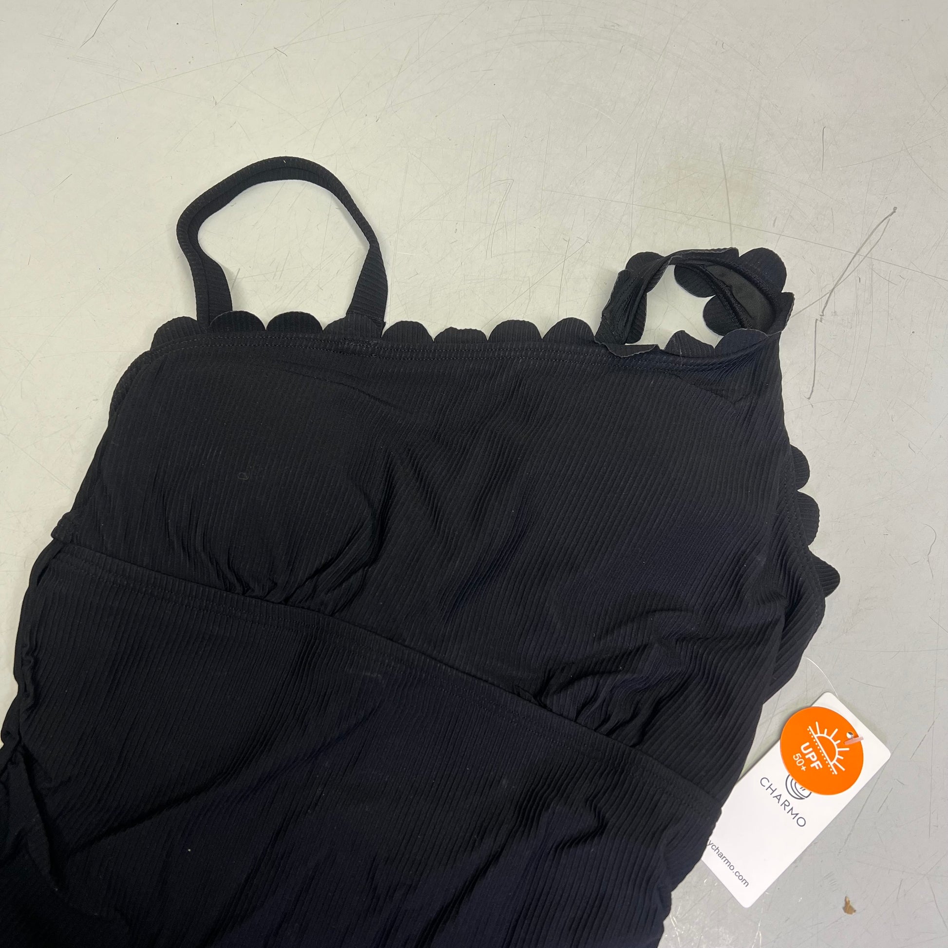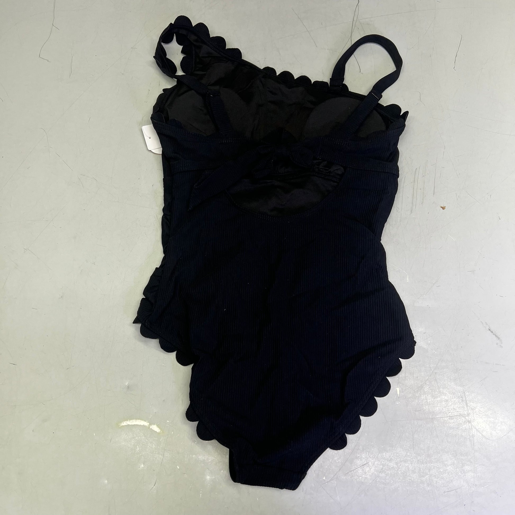 CHARMO Asymmetrical Retro Ribbed Moderate Cut One Piece Swimwear Wmn Sz XL Black