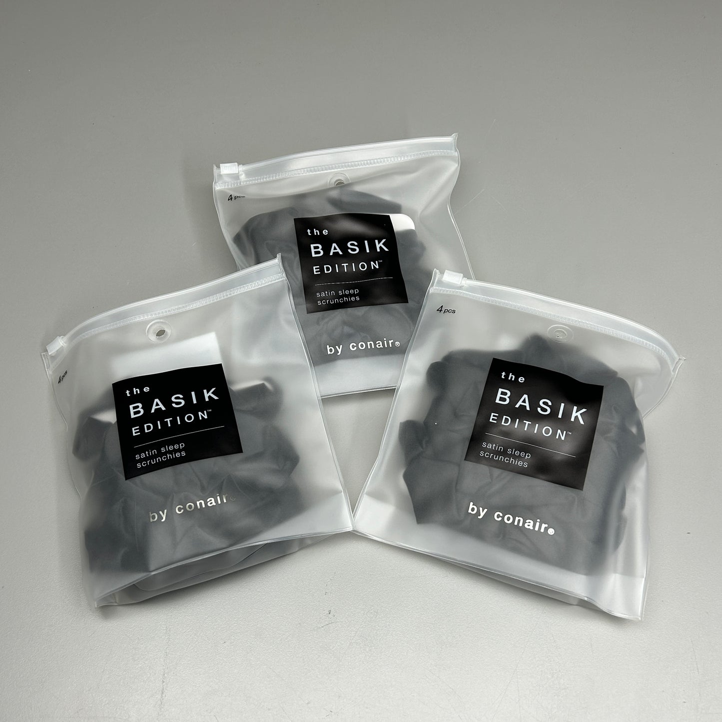 CONAIR 3-PACK! The Basik Edition Satin Sleep Scrunchies Black (New)