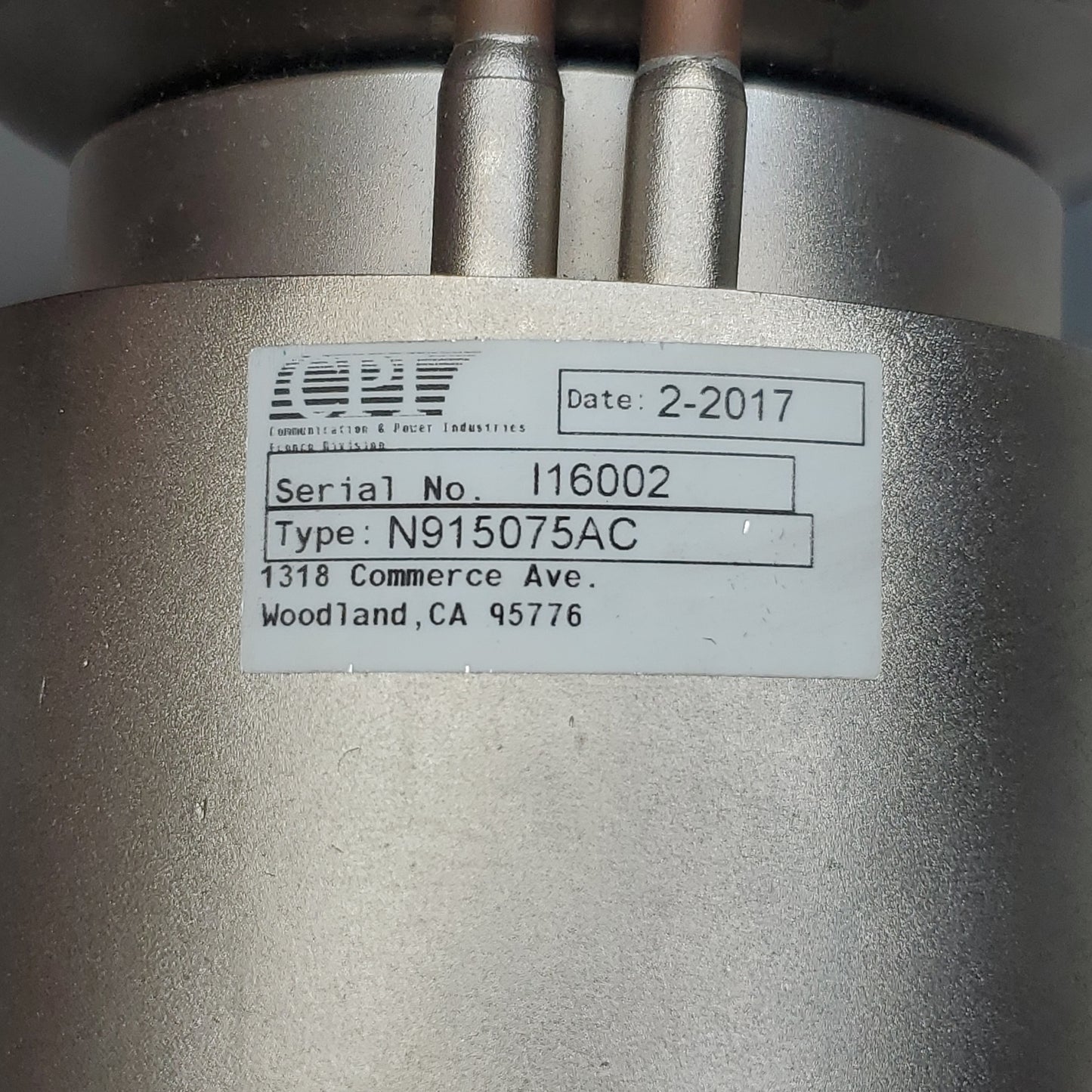 CPI L-Band Magnetron Microwave Tube L10016 CORE100 N915075AC (Pre-Owned)