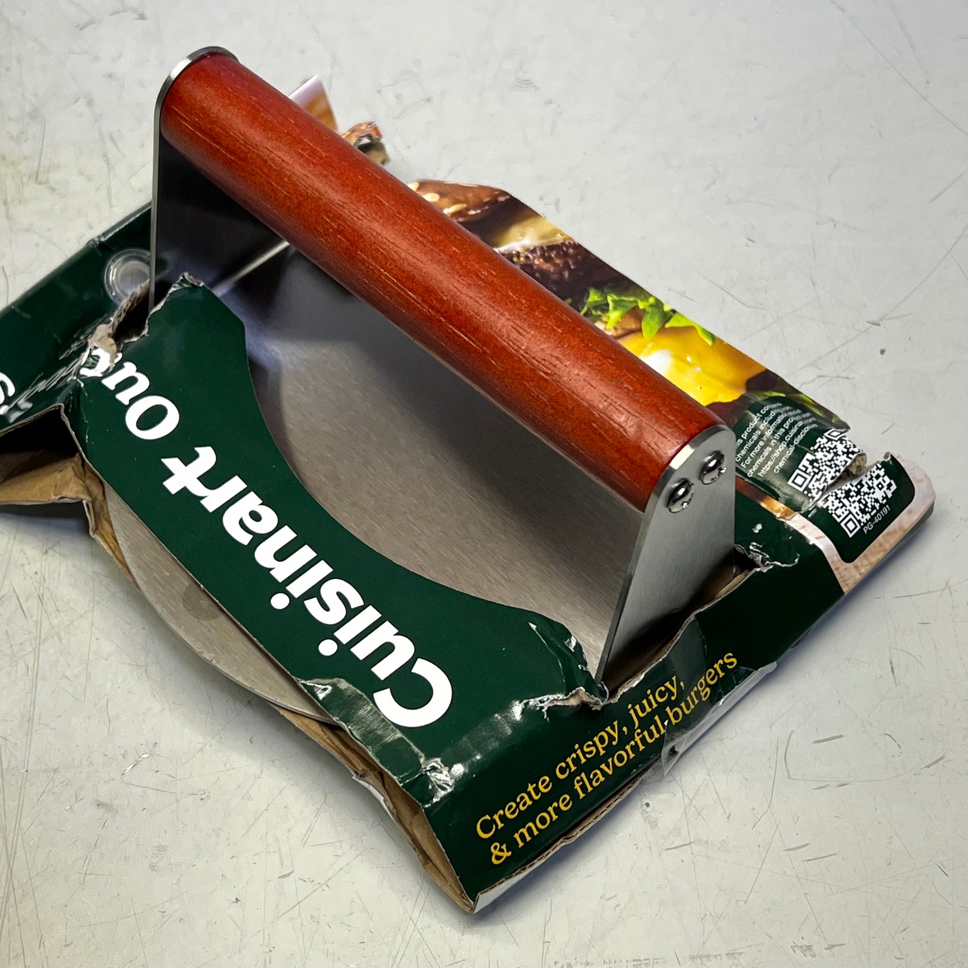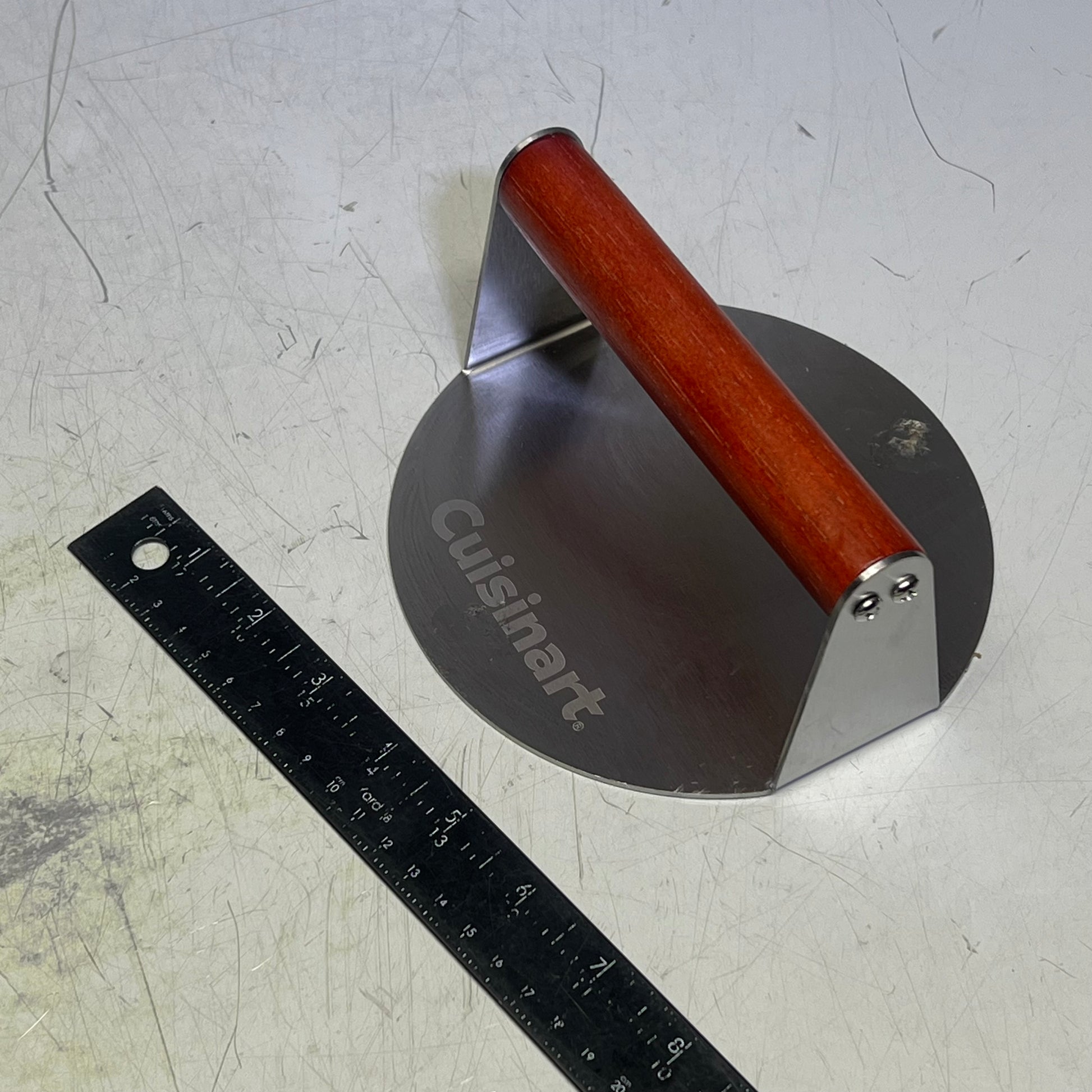 Heavy duty, 6-in. stainless steel press helps create perfect, flavorful smashed burgers every time