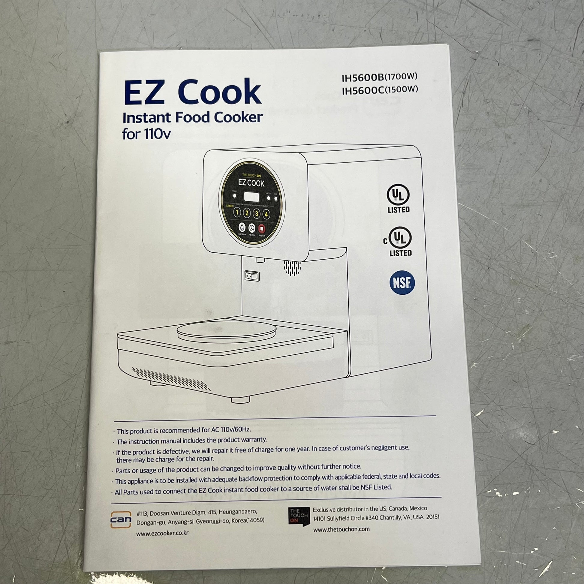 EZ COOK The Touch On Compact Ramyun Cooker Adjustable Settings White/Black H5600