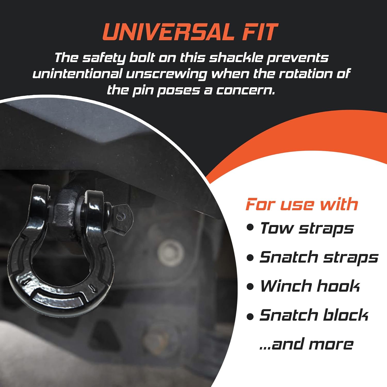 - UNIVERSAL FIT: Our heavy-duty D-ring shackle pairs perfectly with tow straps and tree savers, keeping your gear working smoothly. The safety bolt stops the pin from twisting loose, so you can tow with confidence. Its bow shape is ideal for everything from ATVs to trailers—ready for your next adventure!
