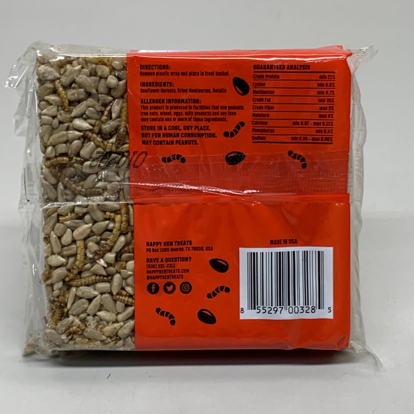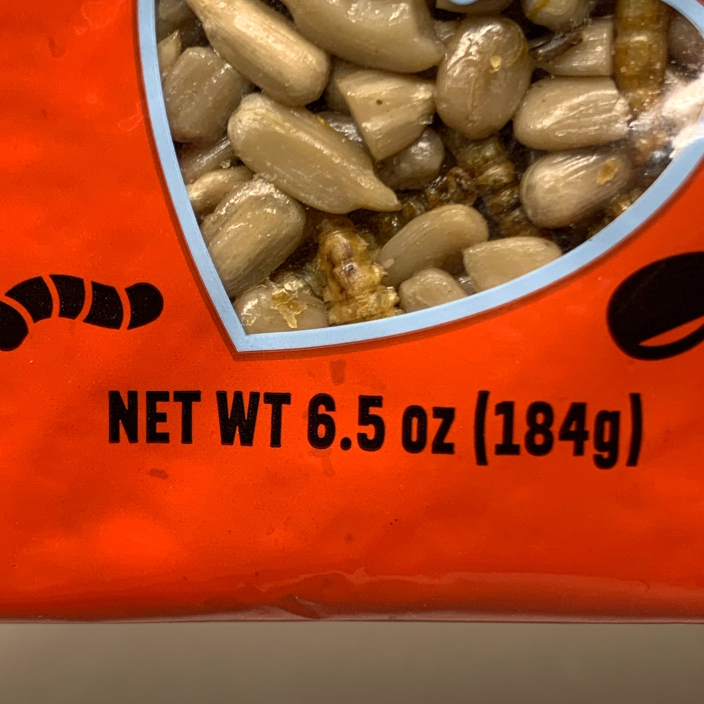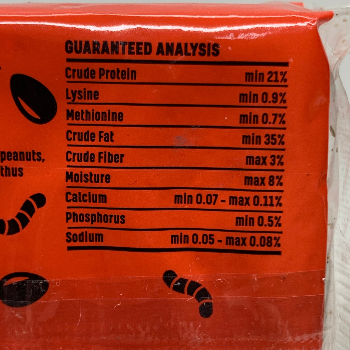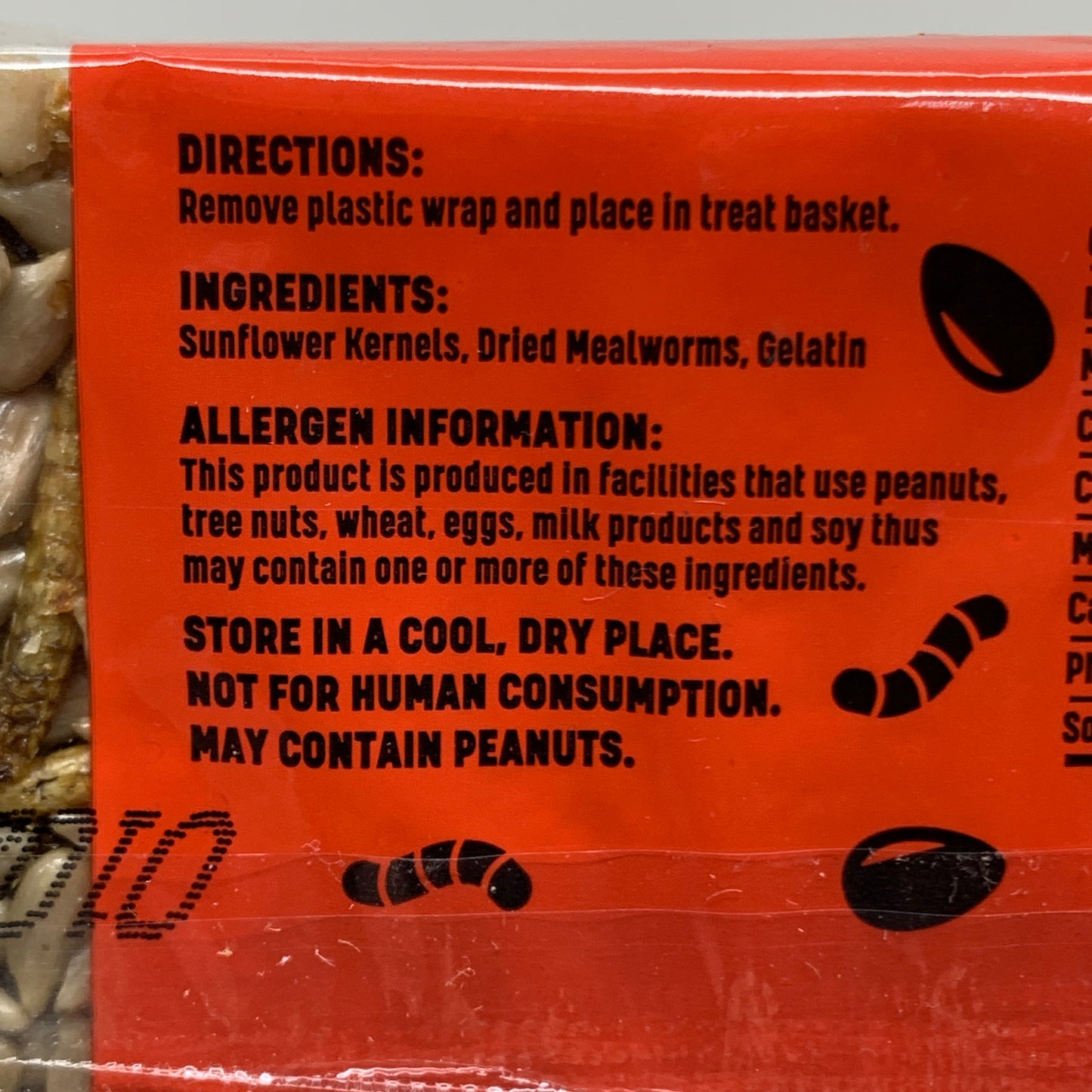 Ingredients: Peanuts, Raisins, Dried Mealworms, Gelatin