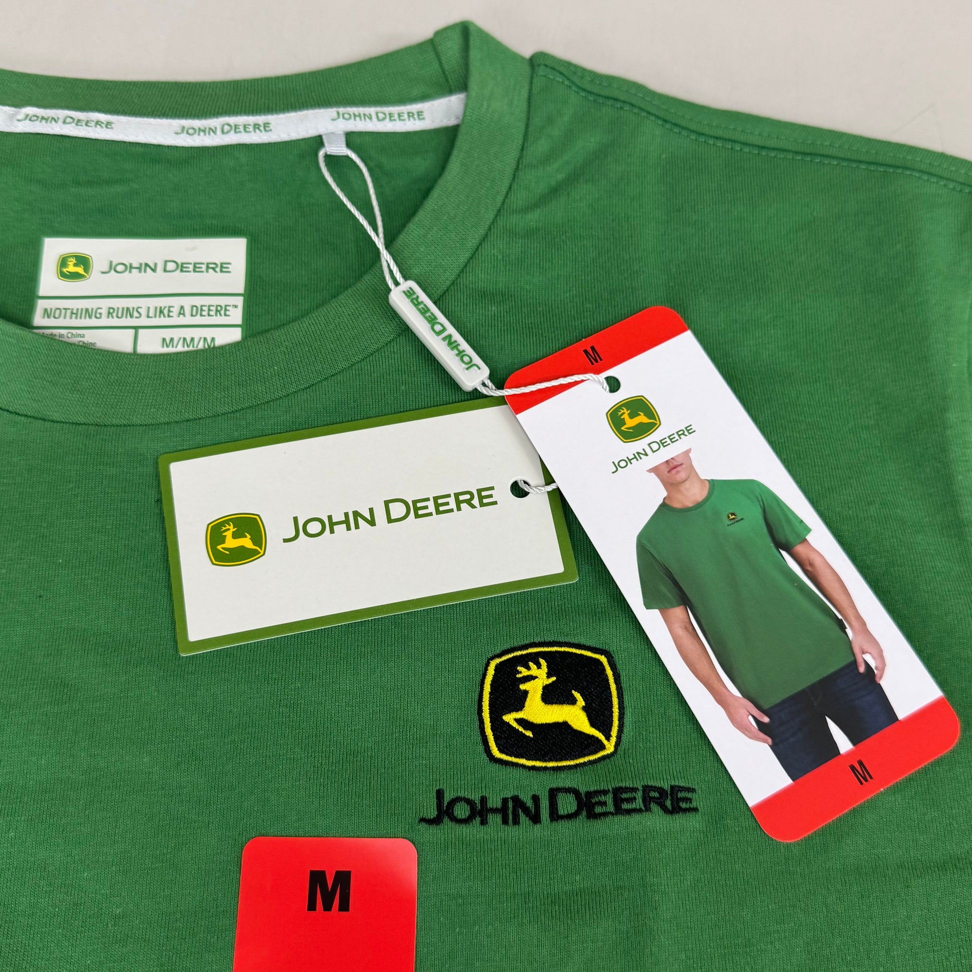 JOHN DEERE Embroidered Logo Short Sleeve Tee Shirt Men's Sz M Green 1896842