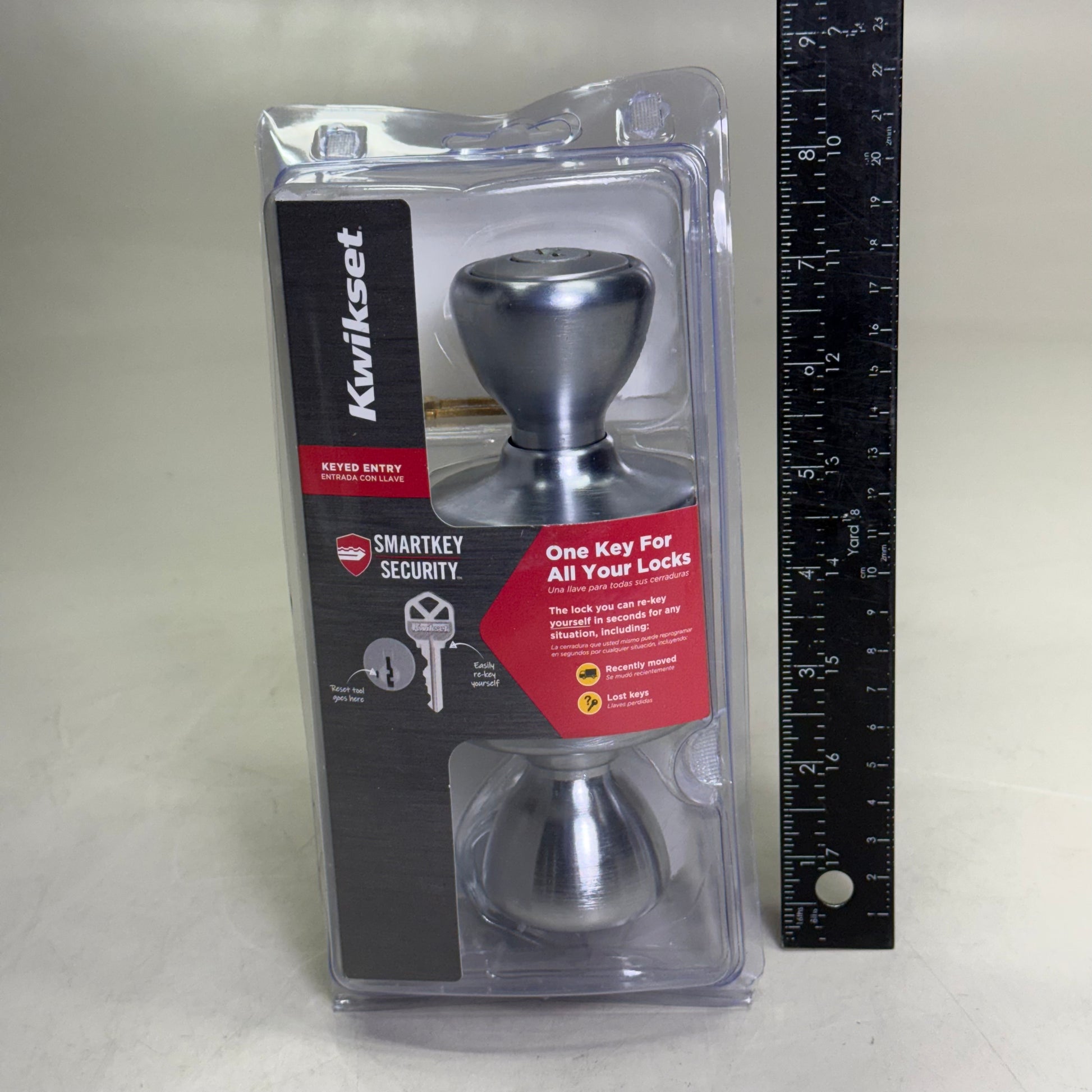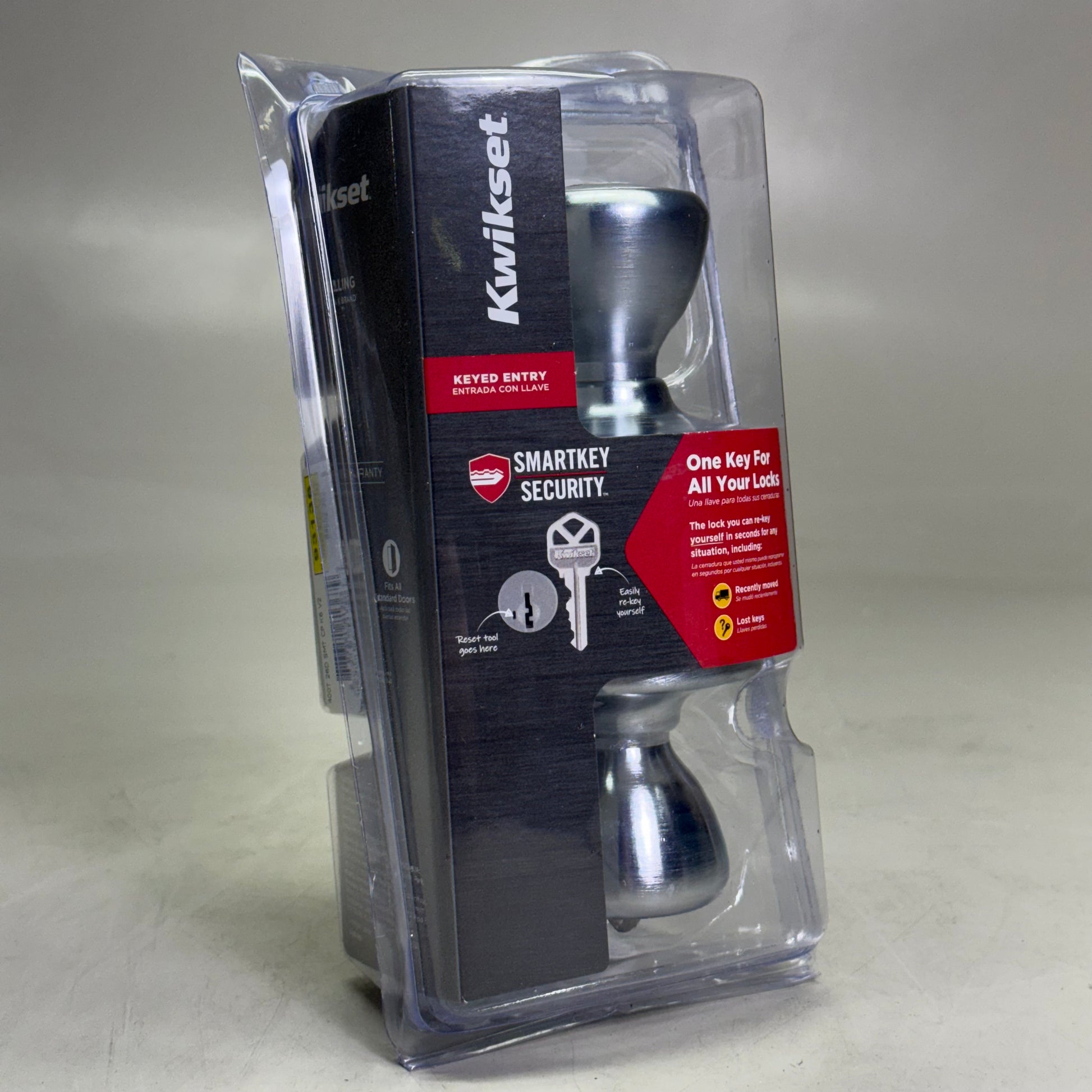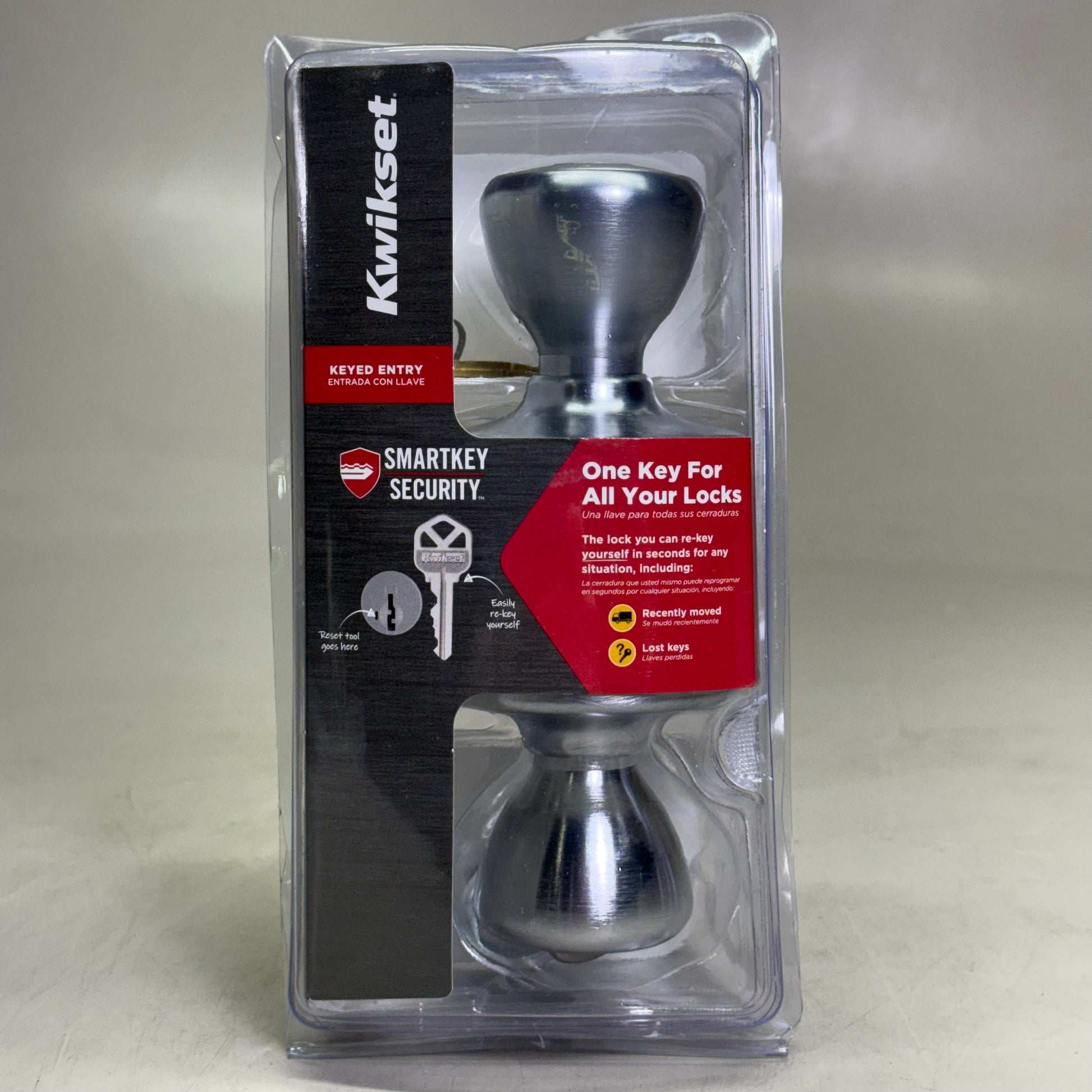 KWIKSET Smartkey Keyed Entry Door Knob w/ Microban Satin Nickel 94002-952