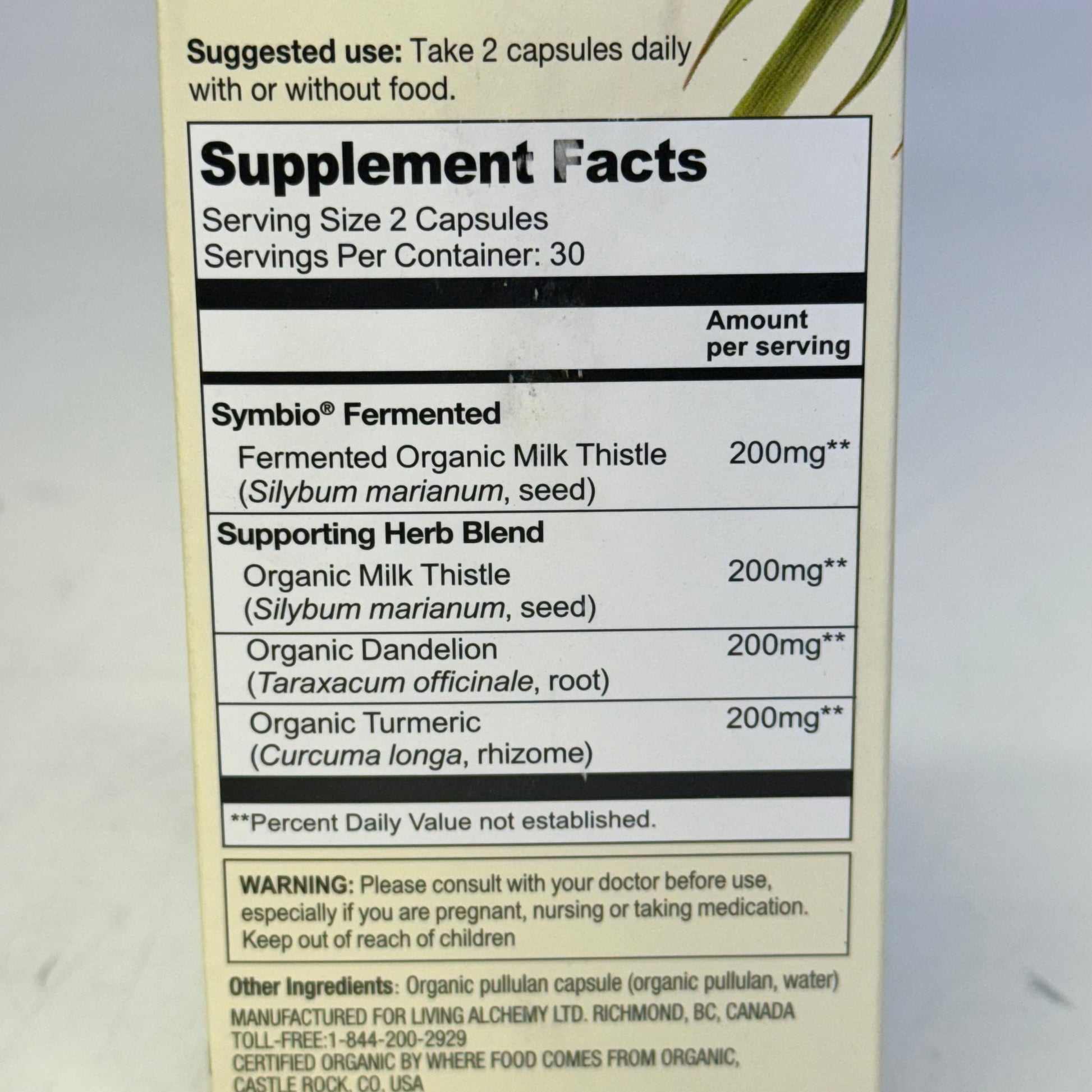 LIVING ALCHEMY Milk Thistle Liver Support BB 08/27 - 60 Vegan Capsules