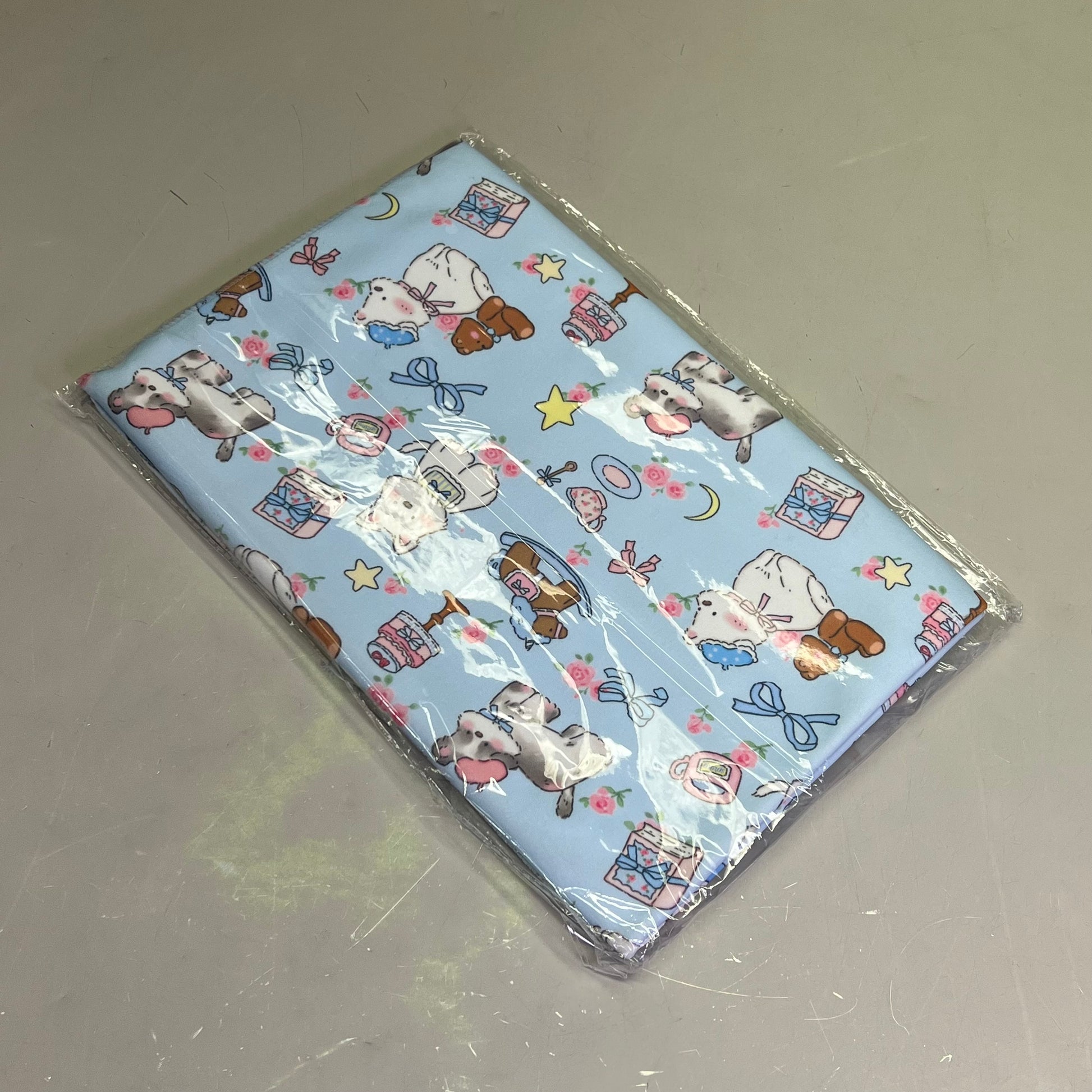 LOVLEY CAVES Self Adhesive Cat Wrap Grooming Blanket Puppys & Bows Pattern Blue