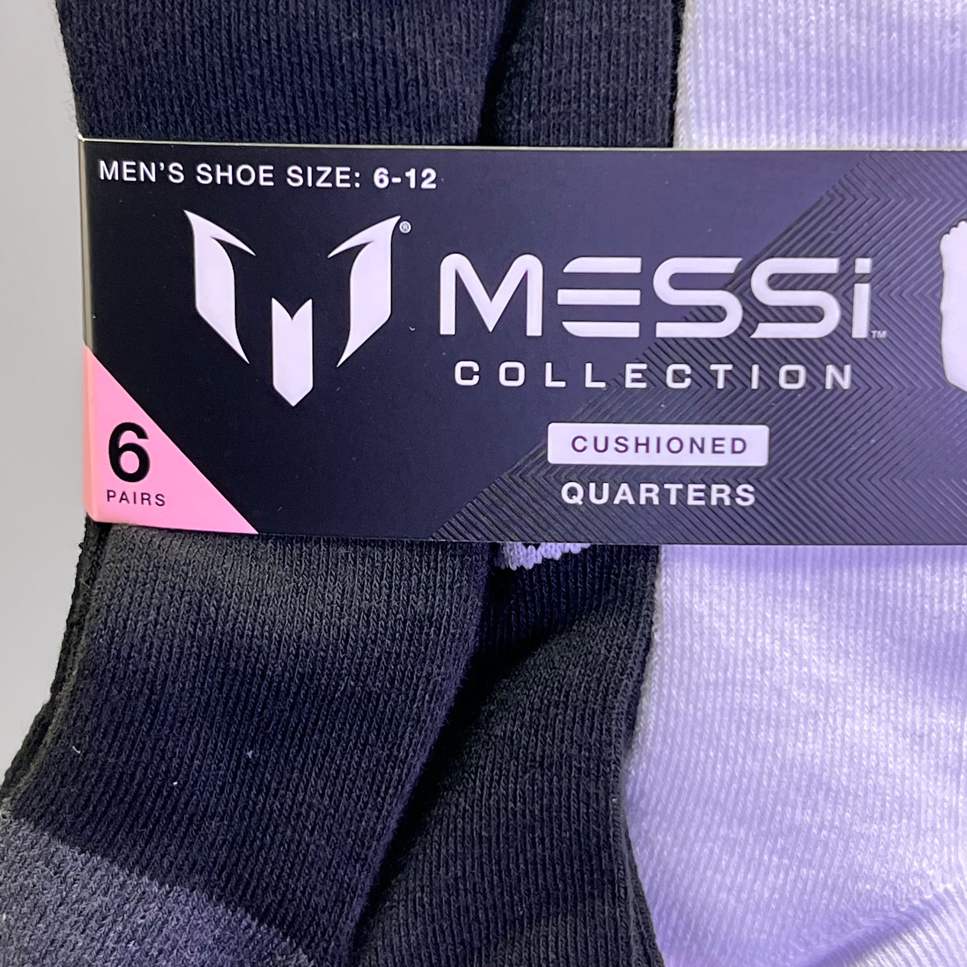 MESSI COLLECTION (6 PAIR) Socks Cushioned Quarters Men's Sz 6-12, Black & White
