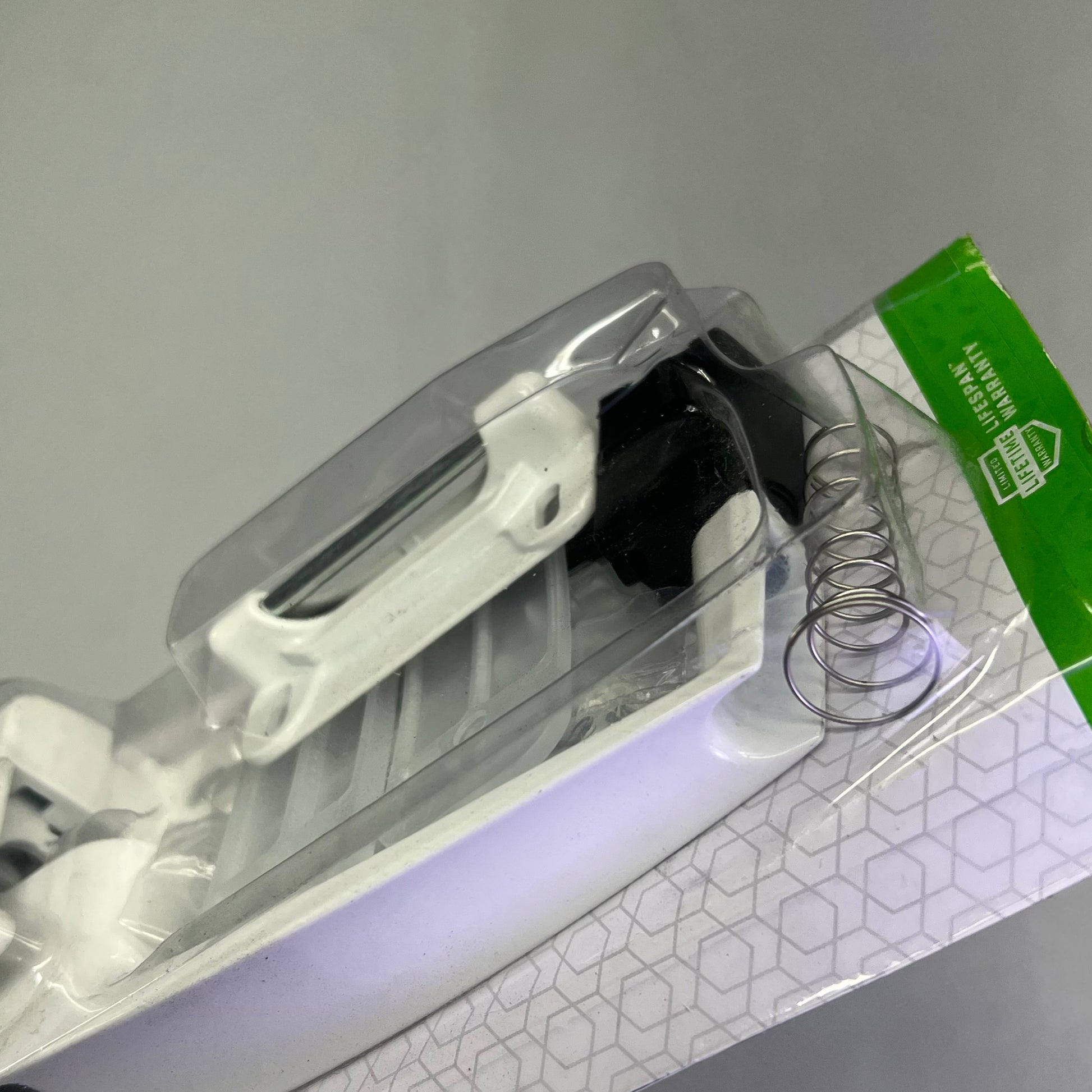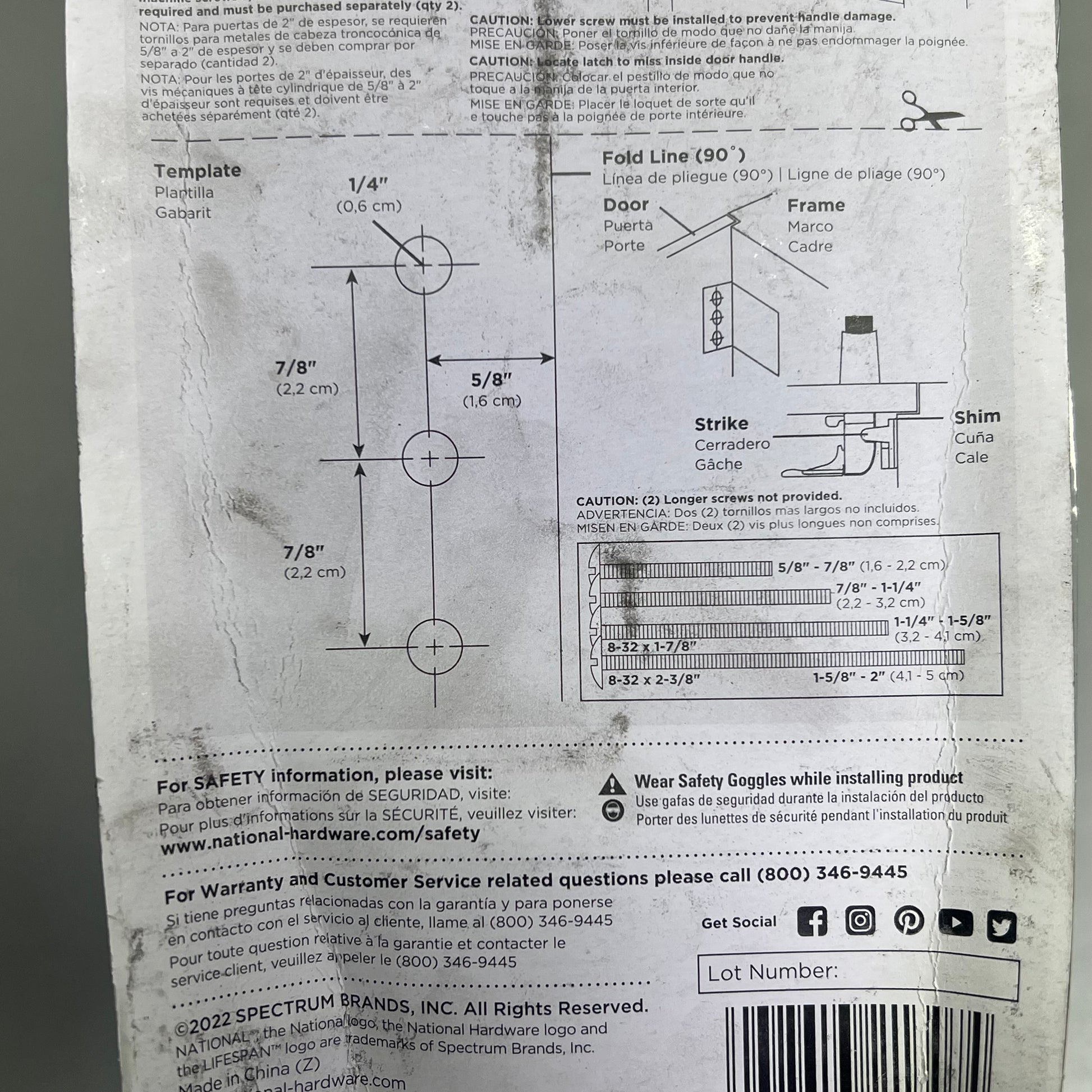 Description: Designed for wood or metal screen and storm doors 1-3/4 in hole spacing. Fits wood doors from 5/8 to 2 in thick. Interior locking mechanism provides for enhanced security. Mounting screws included to match product finish. Includes spring loaded strike plate