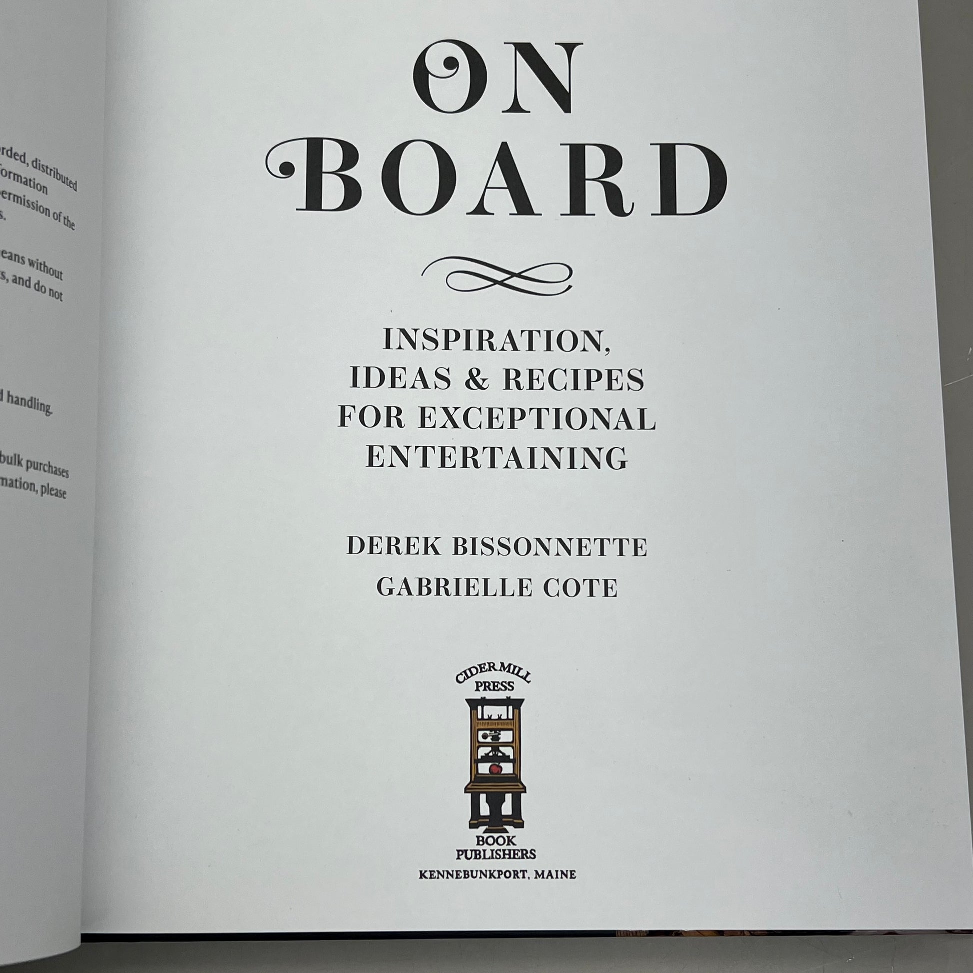 ON BOARD Ideas & Recipes By Derek Bissonnette & Gabrielle Cote Hardcover Book