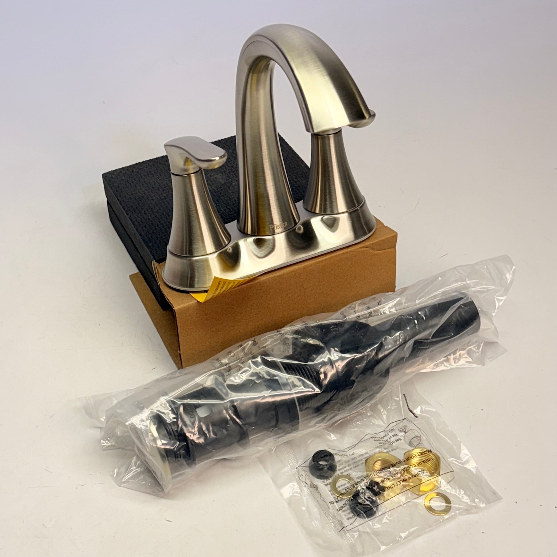 PFISTER Centerset Lavatory Faucet W/ Pop-Up 4" Brushed Nickel LG48-WRPK