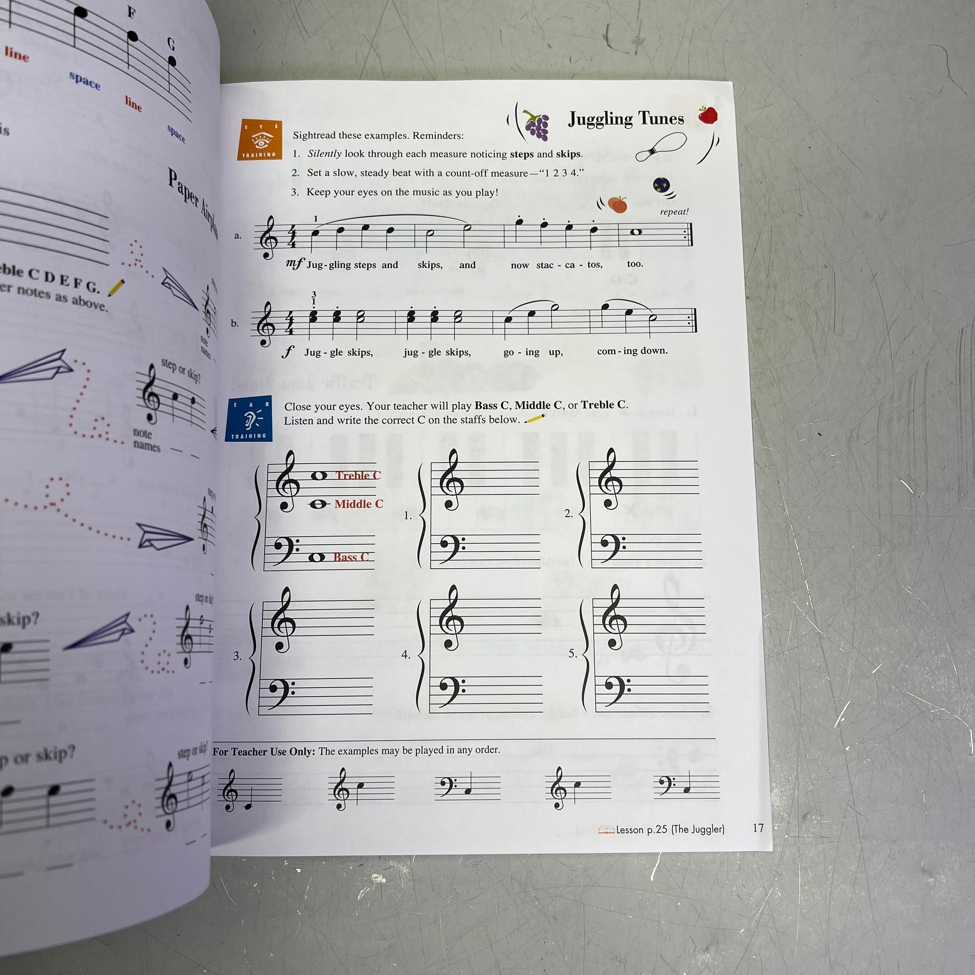 (Faber Piano Adventures ). The 2nd Edition Level 1 Lesson Book introduces all the notes of the grand staff, elementary chord playing, and the concept of tonic and dominant notes. Students play in varied positions, reinforcing reading skills and recognizing intervals through the 5th. Musicianship is built with the introduction of legato and staccato touches. This level continues the interval orientation to reading across the full range of the Grand Staff. The 5-finger approach is presented here in a fresh, musically appealing way.