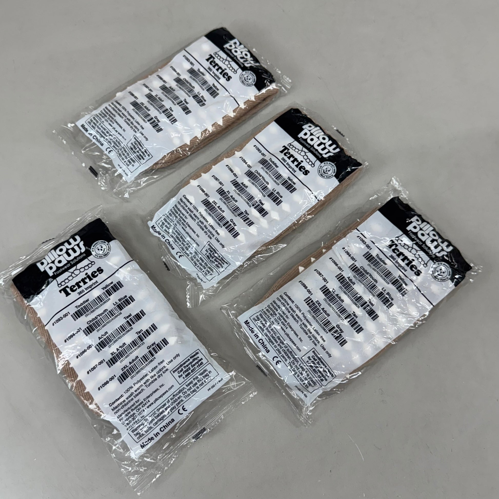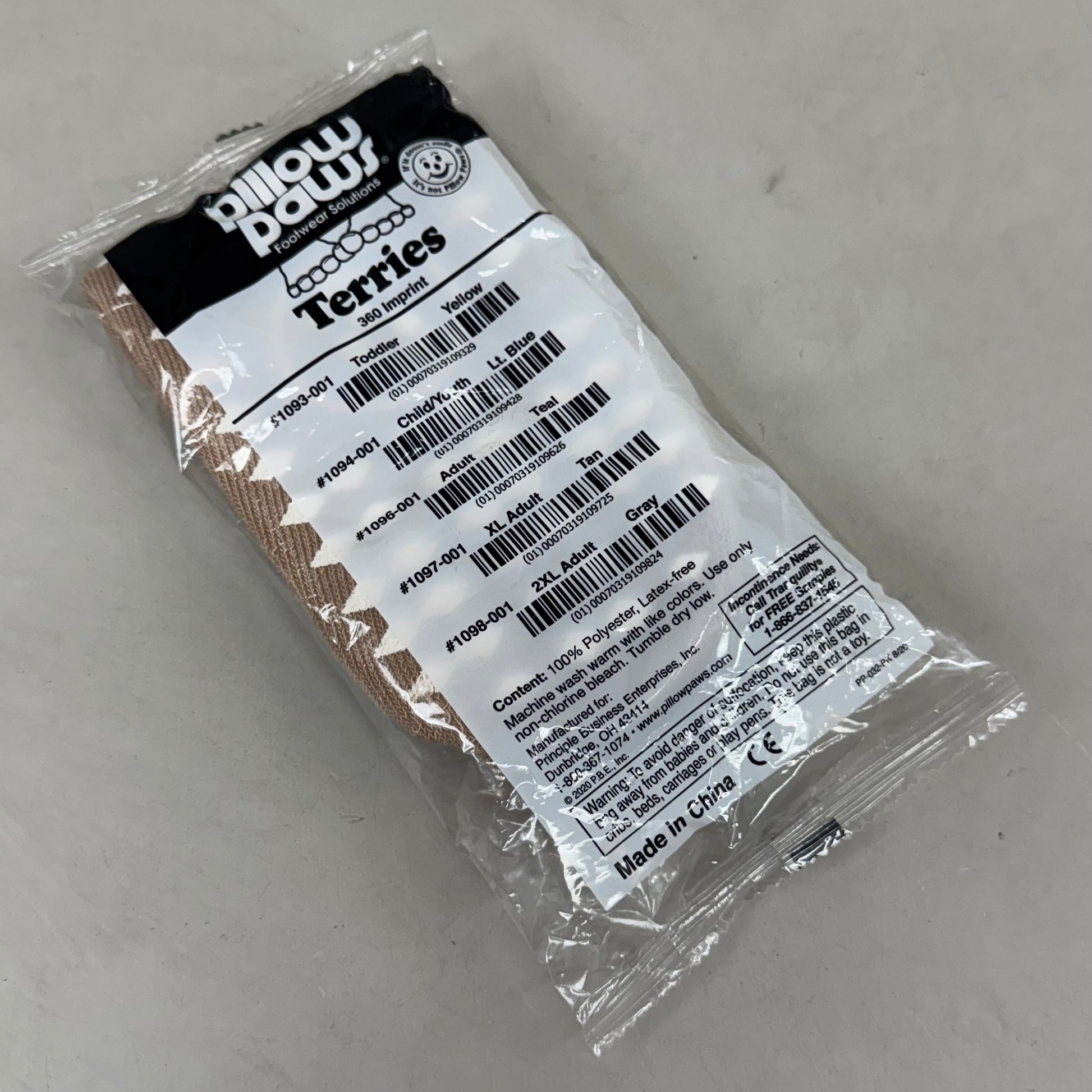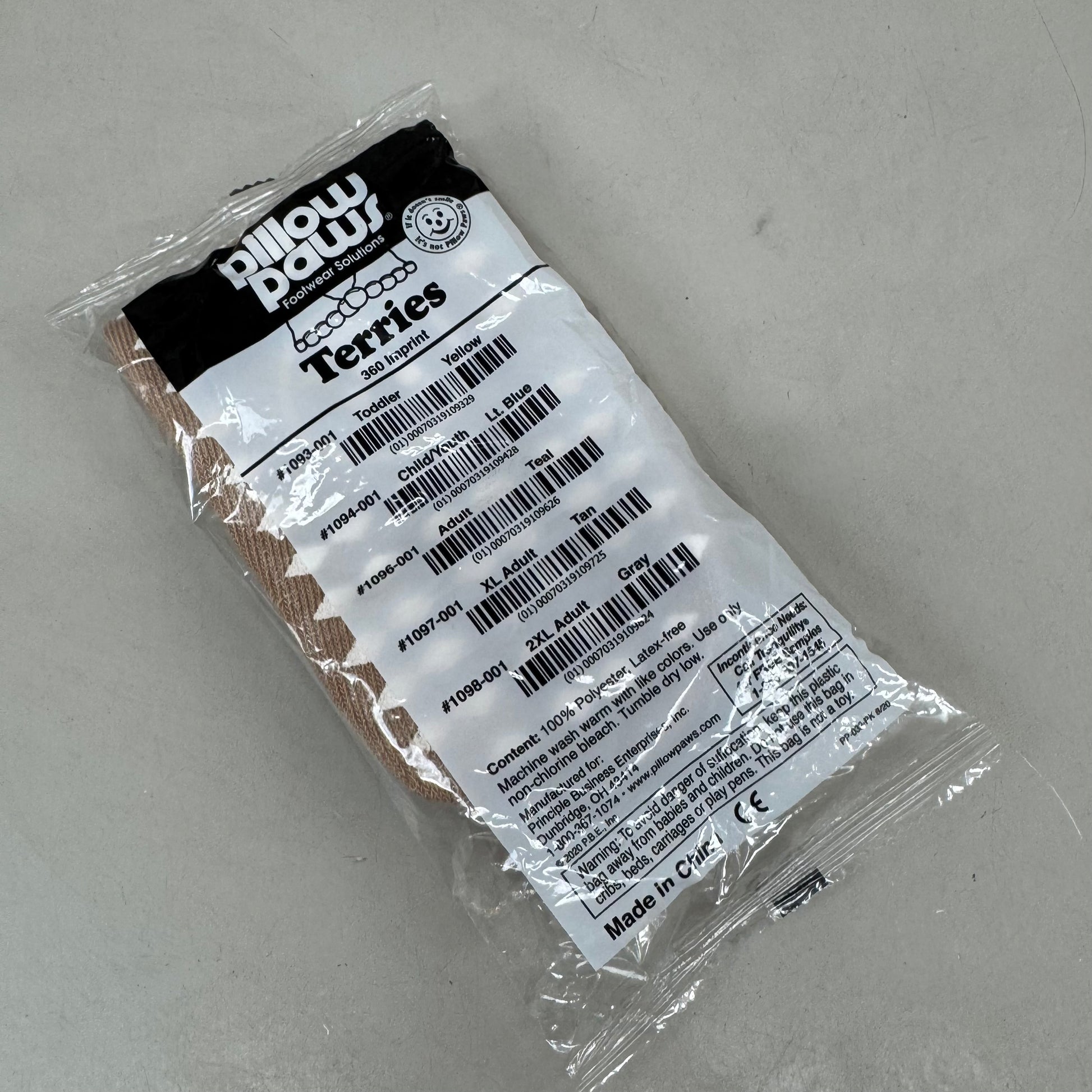 - Printed with a robust tread on the bottom only, Single Imprint Terries are color-coded by size to make size selection easy and efficient