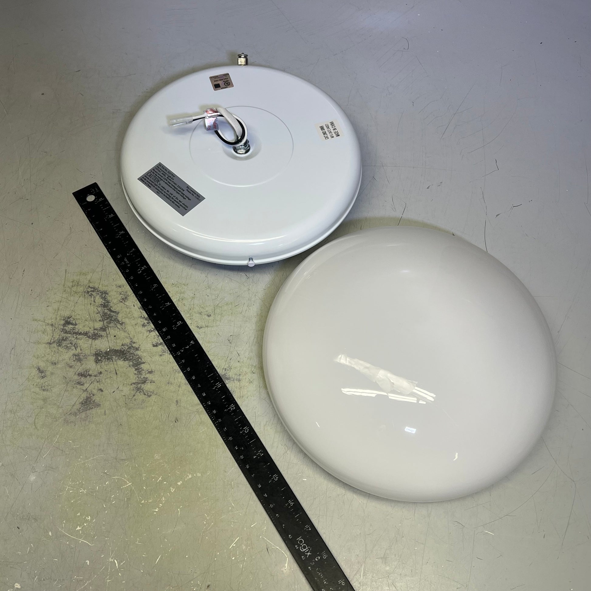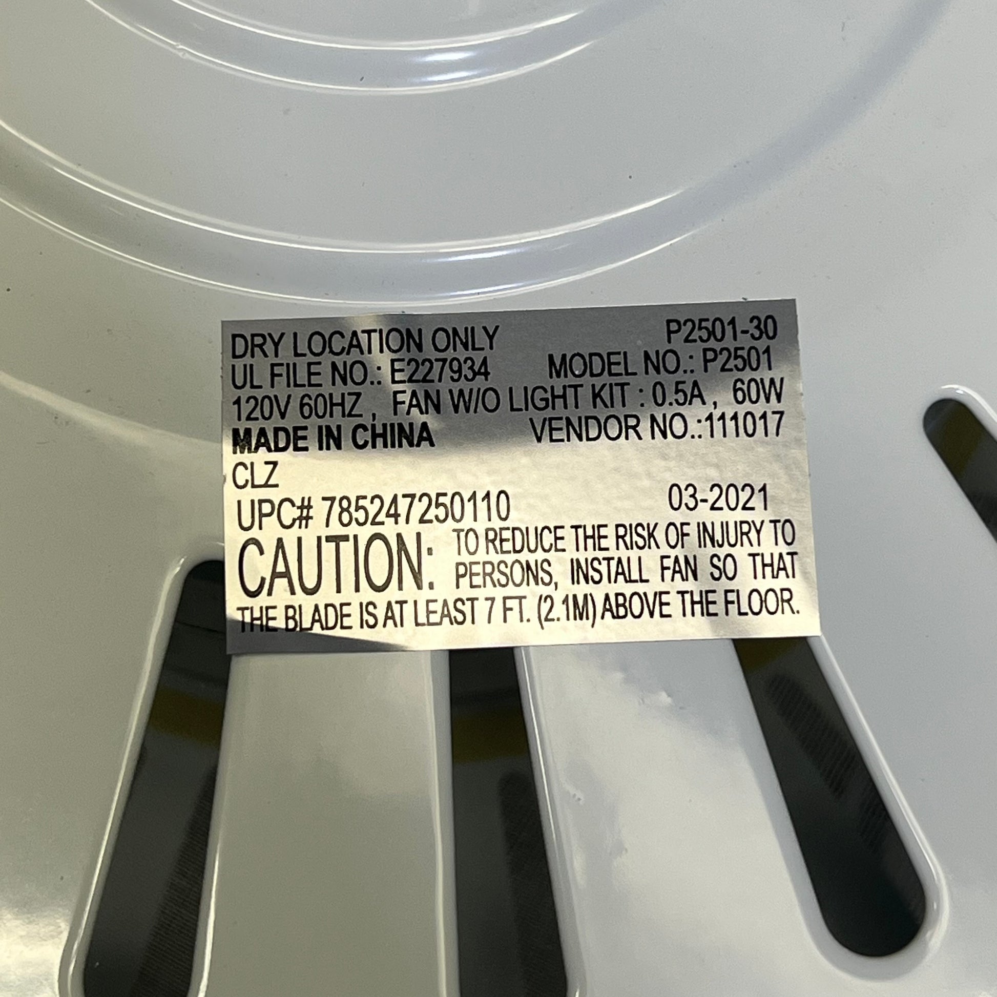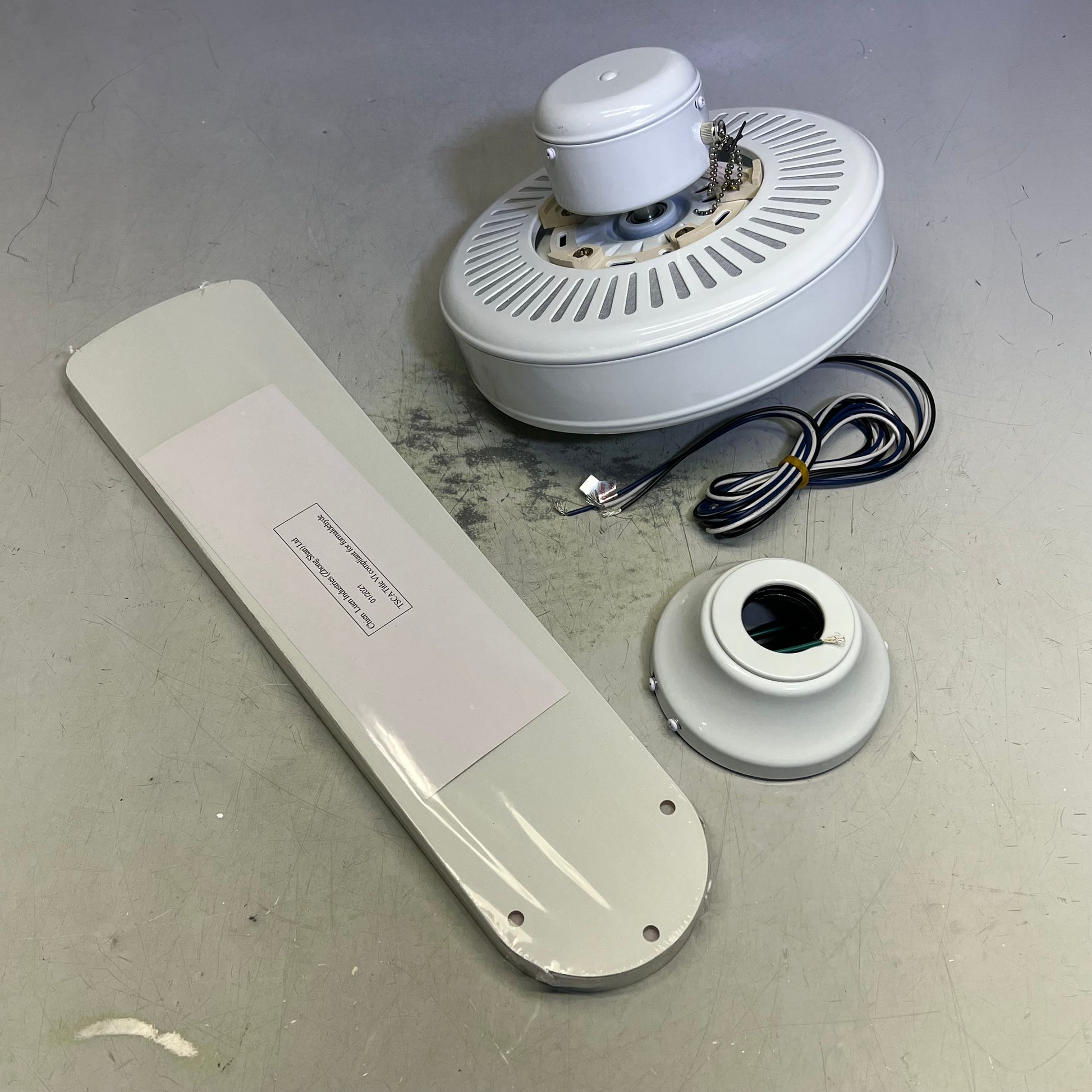 White finish comes with reversible White and Washed Oak blades