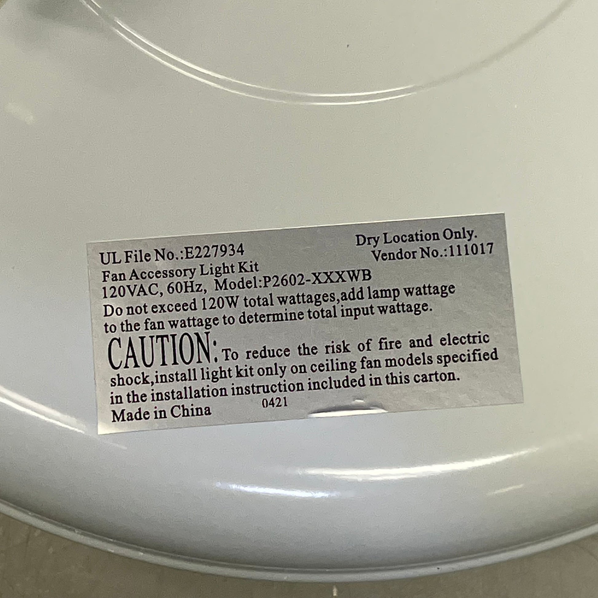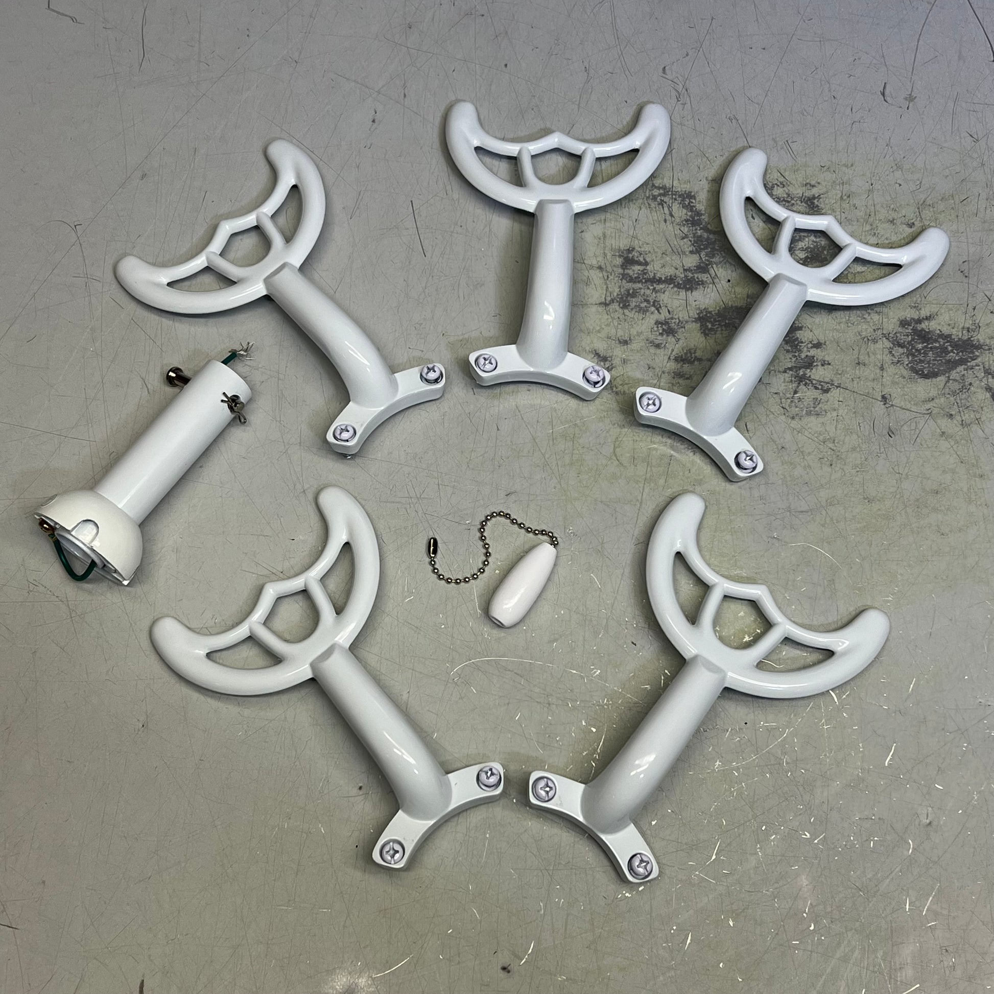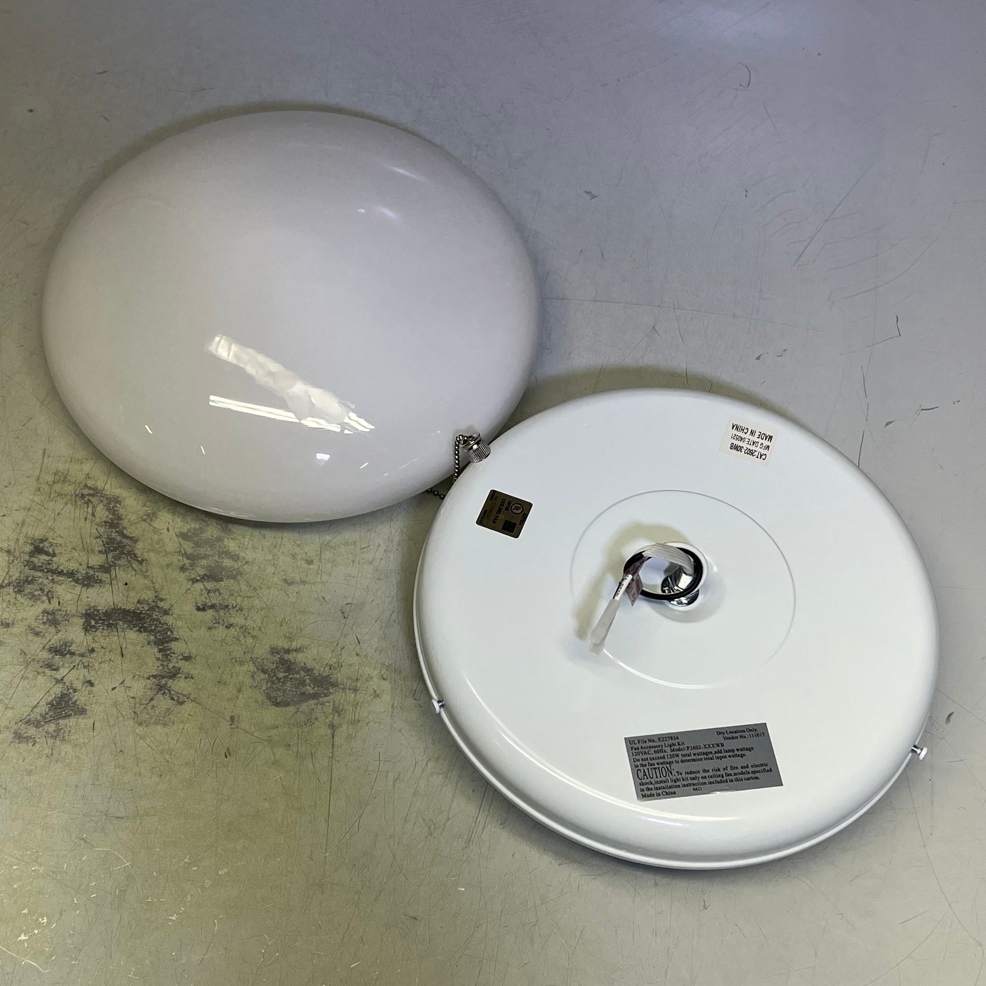 White finish comes with reversible White and Washed Oak blades