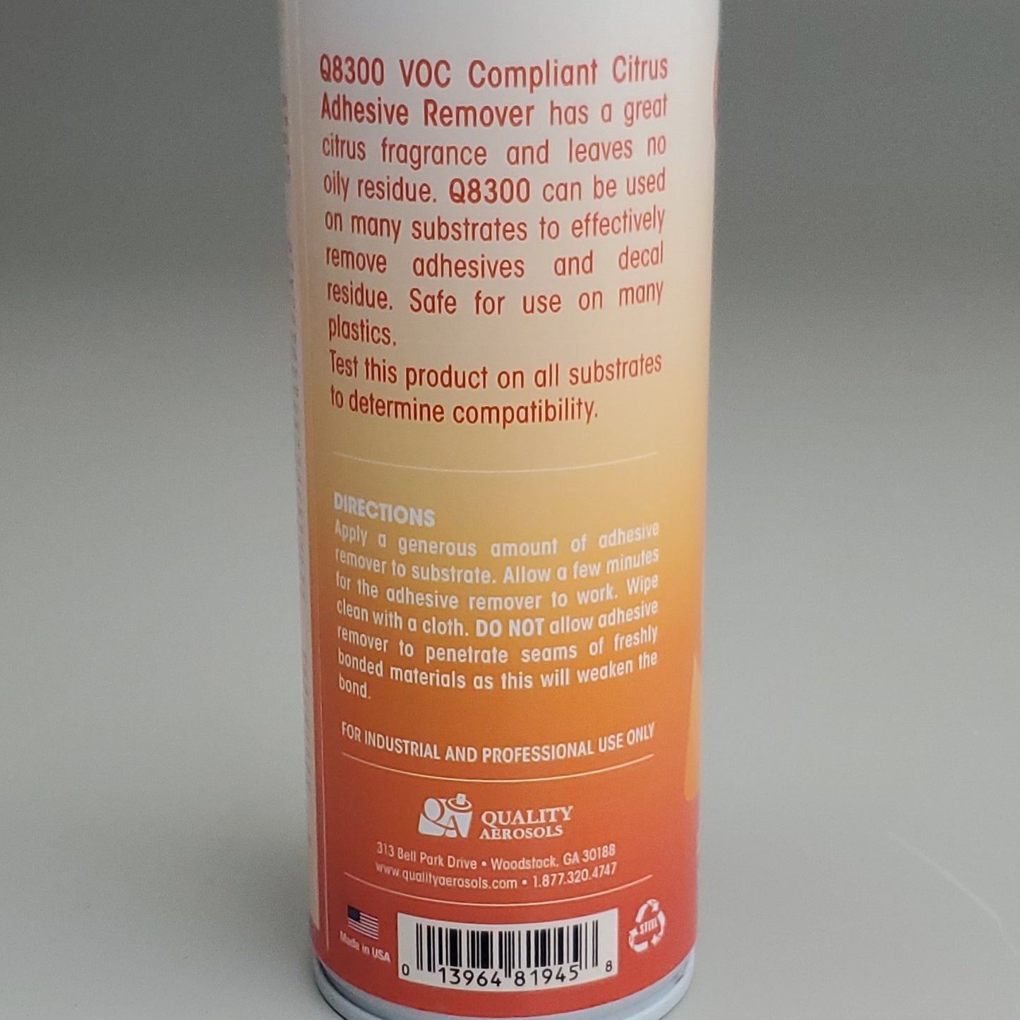 QUALITY AEROSOLS Citrus Adhesive Remover 13 oz VOC Compliant Q8300 (New)
