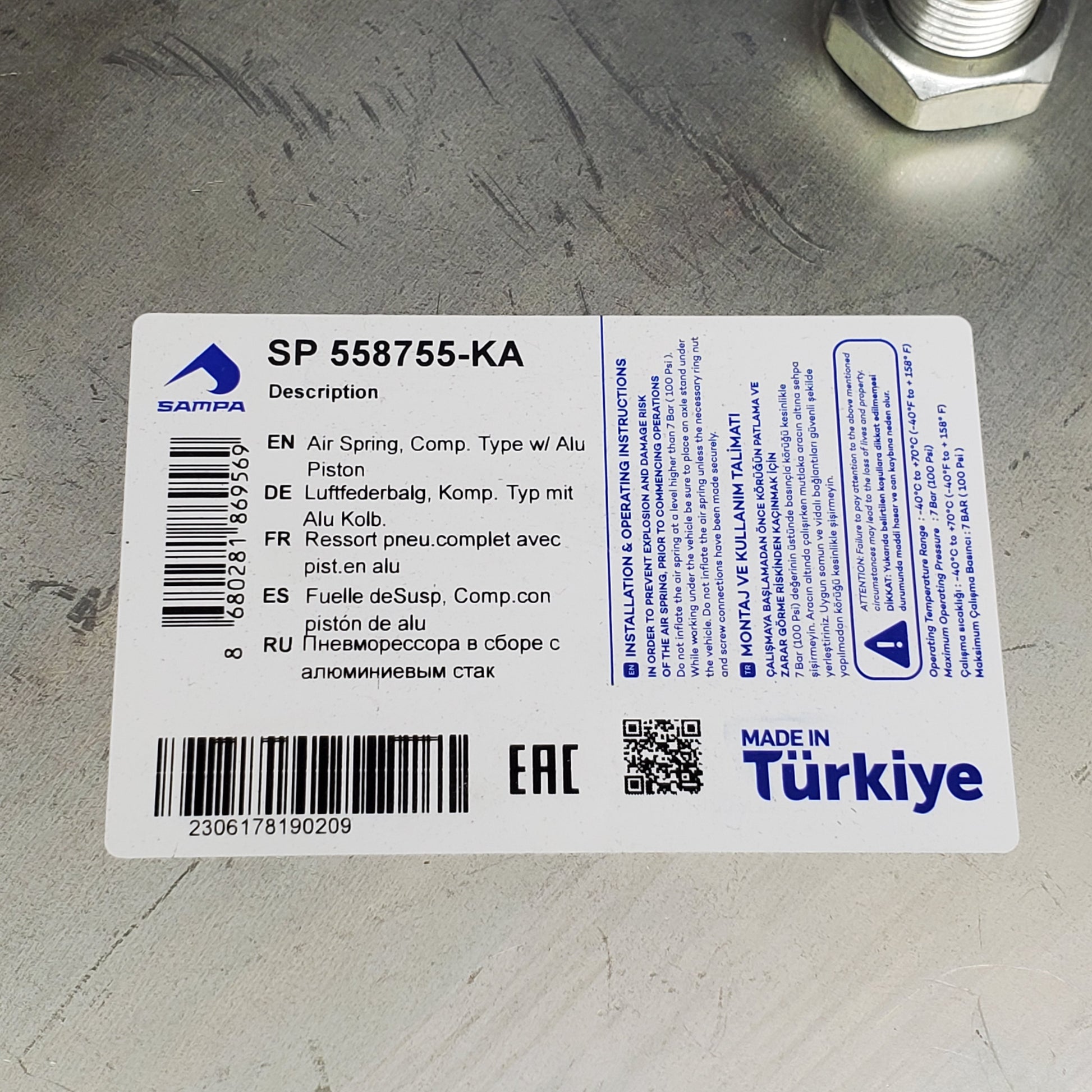 SAMPA Air Spring Aluminum Piston for Hendrickson SP 558755-KA