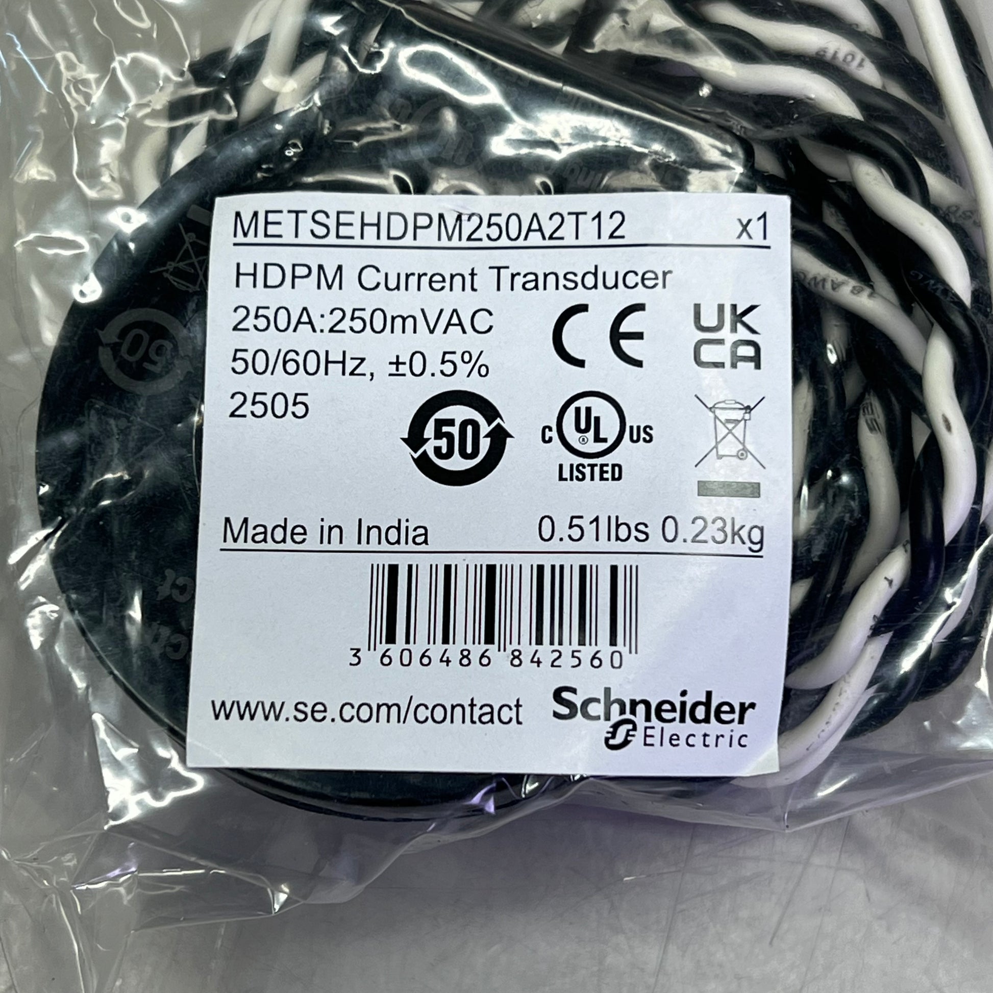 SCHNEIDER ELECTRIC Solid Core Current Transformer 250A 600 V METSEHDPM250A2T12