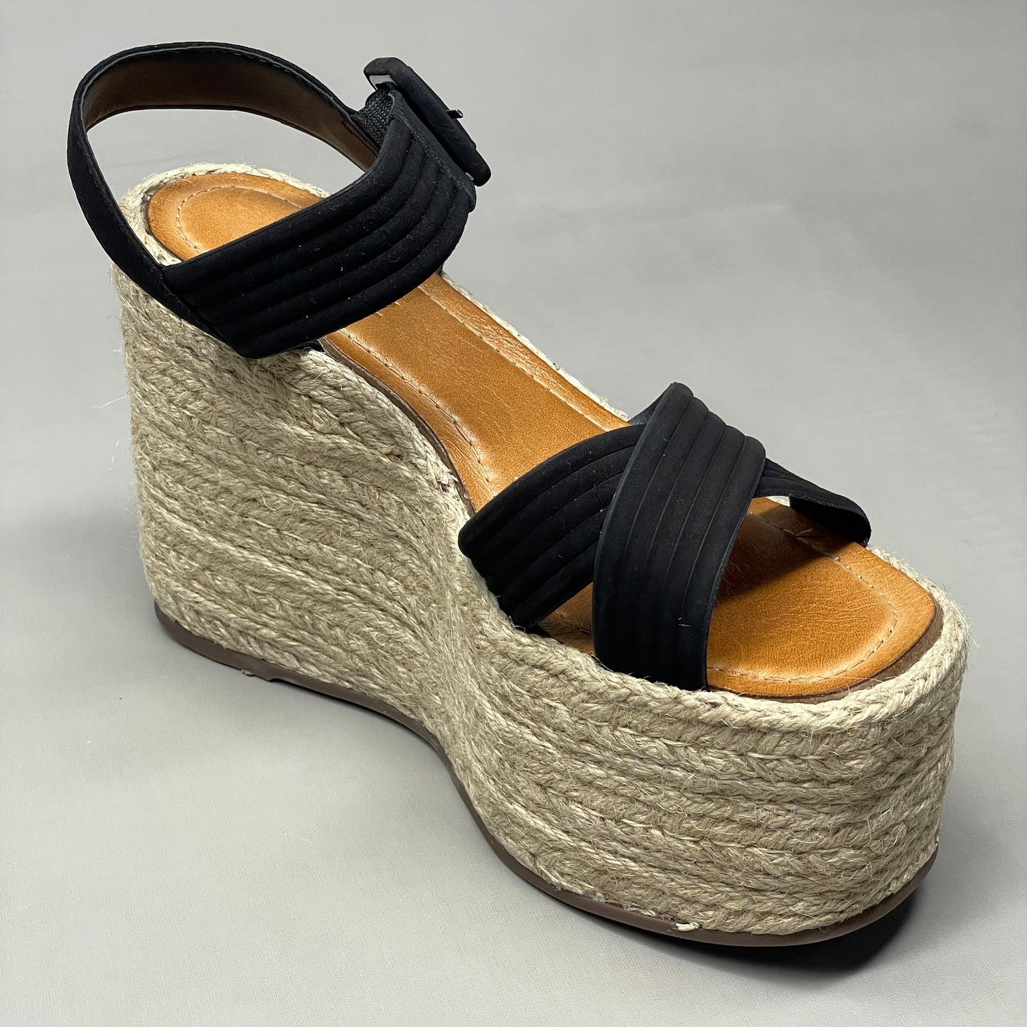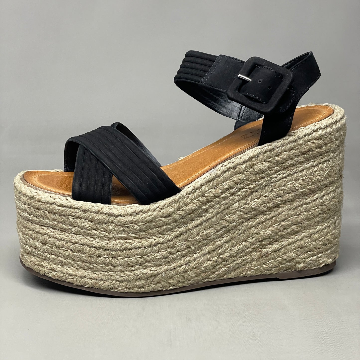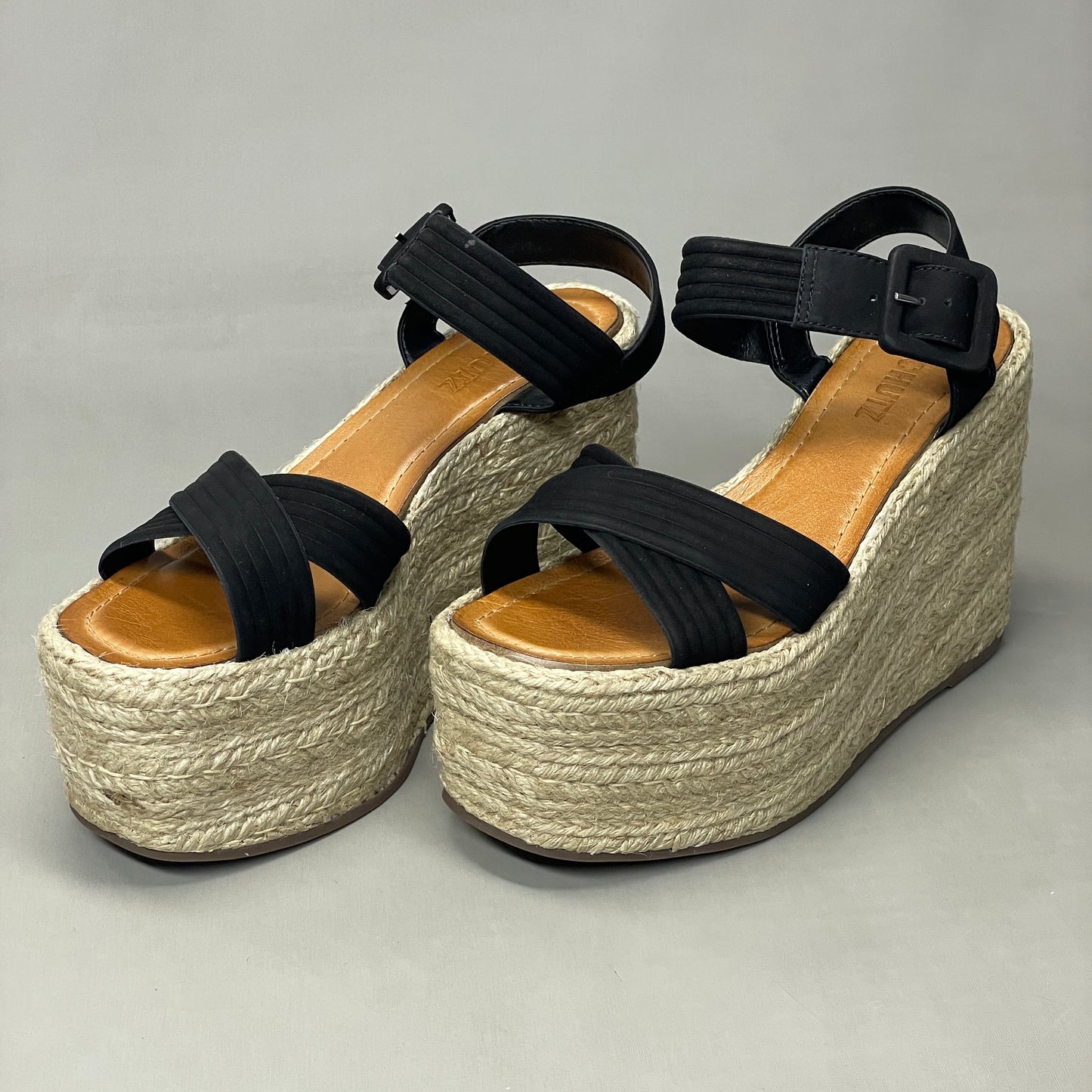 SCHUTZ Blisse Nubuck Platform Buckled Strap Sandal Black Sz 10.5 S216350001(New)