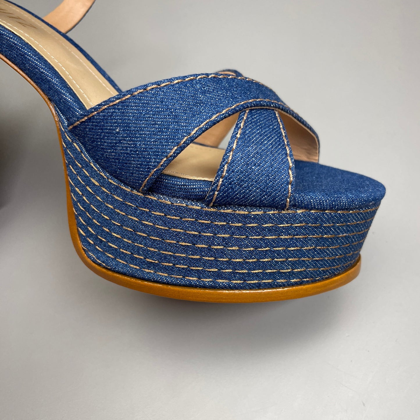 SCHUTZ Keefa Casual Denim Women's 4" Heeled Sandal Platform Blue Sz 6B (New)