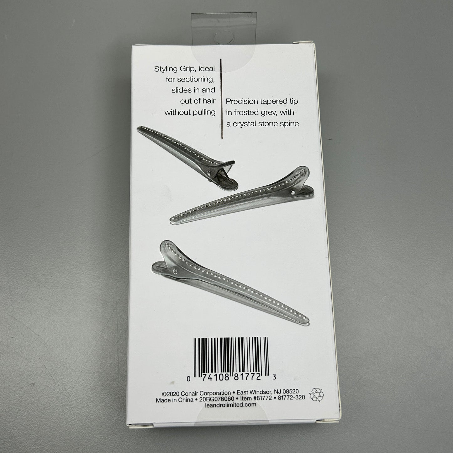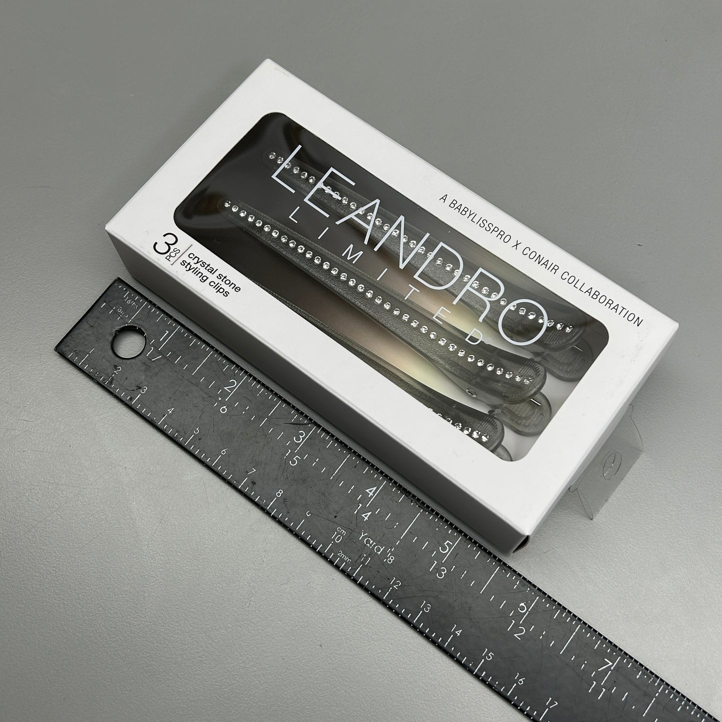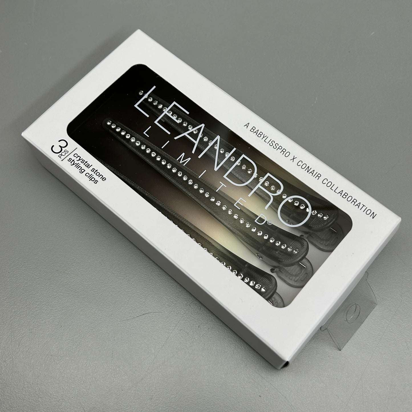 Hold your hair in place with style with the CONAIR 3-PACK! Leandro Limited Crystal Stone Styling Clips 3-Pieces. These clips are made with a durable metal body and feature a beautiful crystal stone embellishment. They are perfect for securing sections of hair while styling or for keeping your hair in place throughout the day.