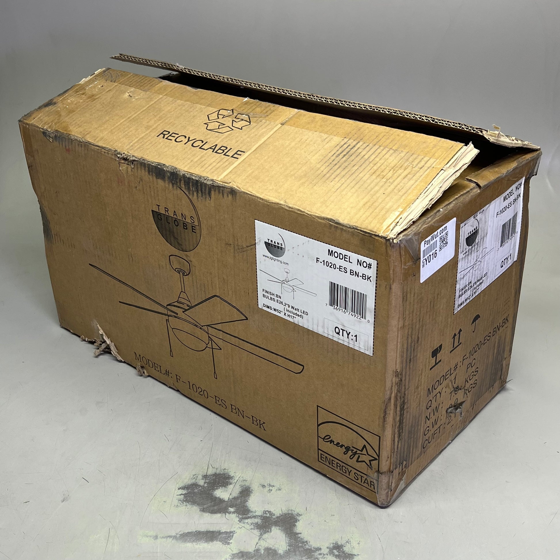 TRANSGLOBE Cappleman Energy Star 5-Blade Ceiling Fan Brushed Nickel F-1020-ES BN