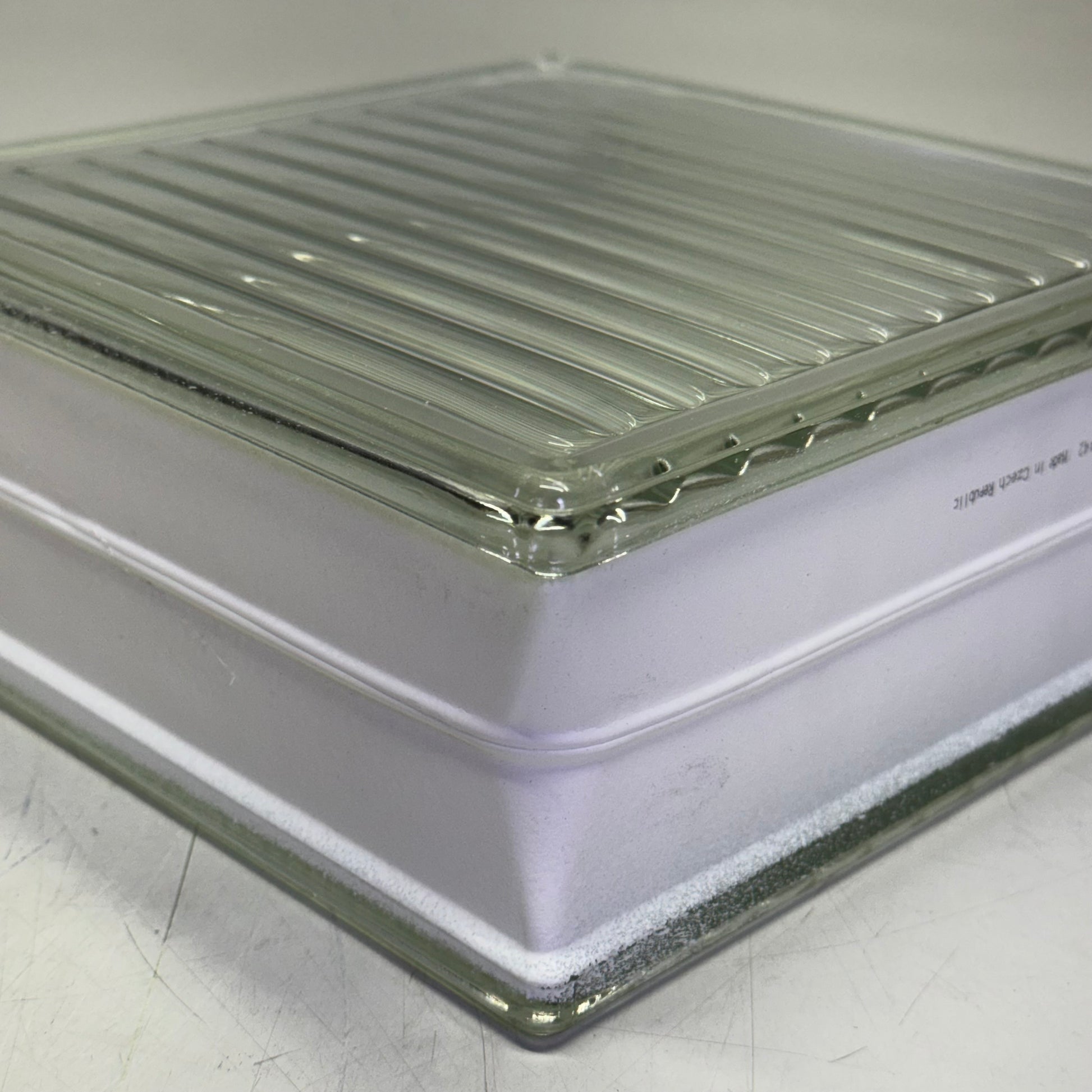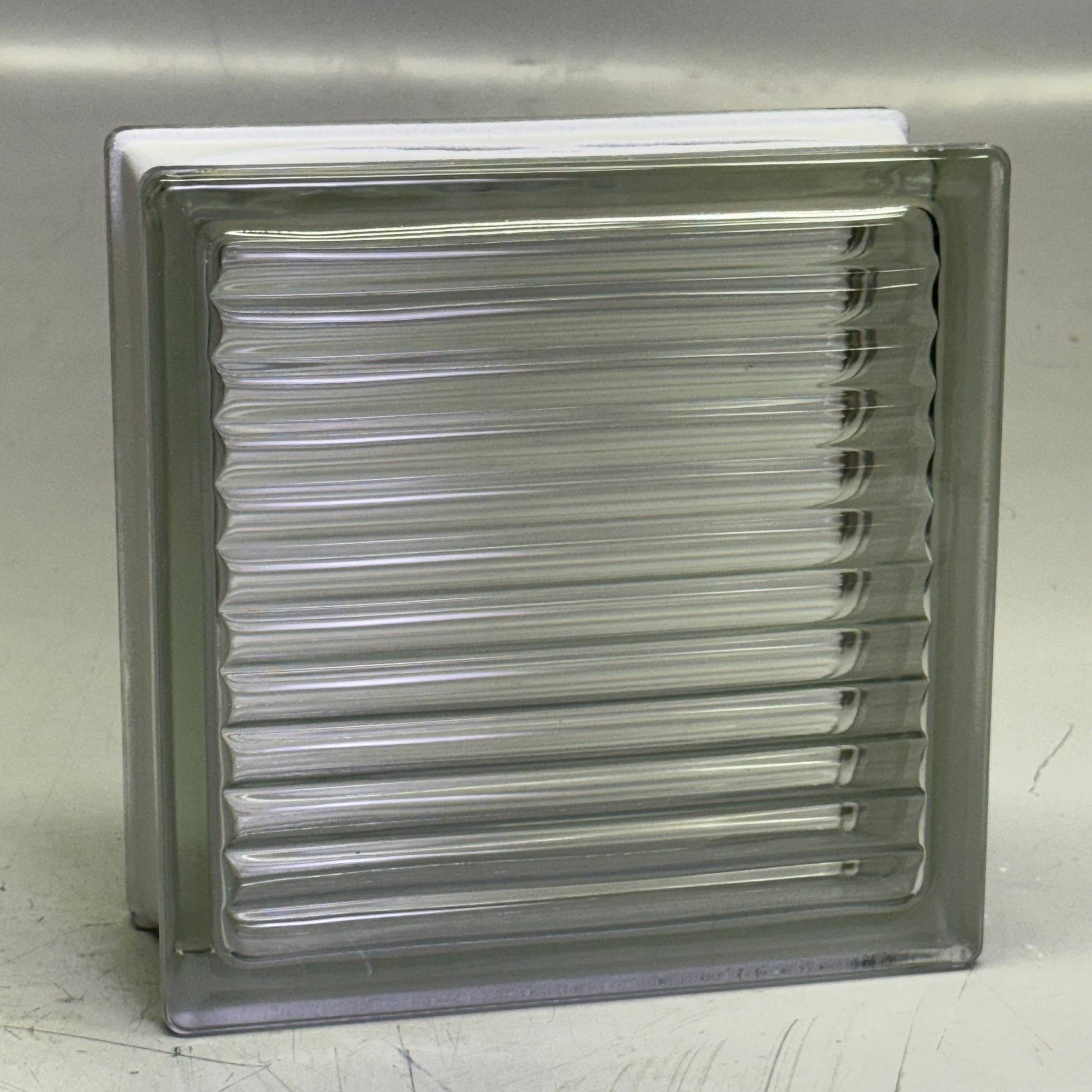 1919/8 Paralline pattern glass block from Seves offers the fluted look of the cross rib without the checker board. The lines on both sides run the same direction for minimal privacy and maximum light transfusion. The Paralline pattern is a great way to dress up any area as a divider or a window.