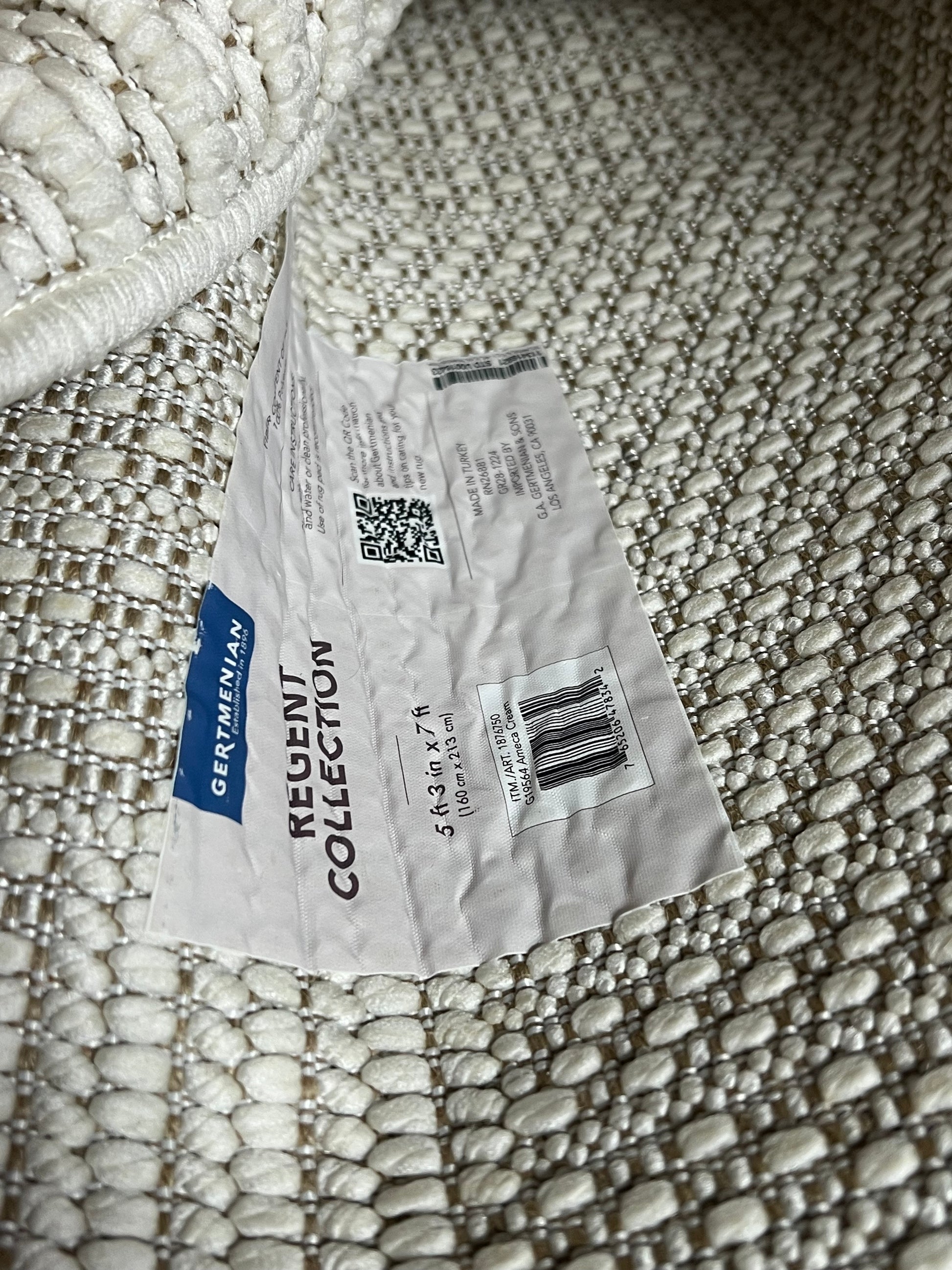 ZA@ GERTMENIAN Regent Collection Textured Soft Outdoor/indoor Rug 5' X 7' White/Tan 1876750 (Return-Dirty)