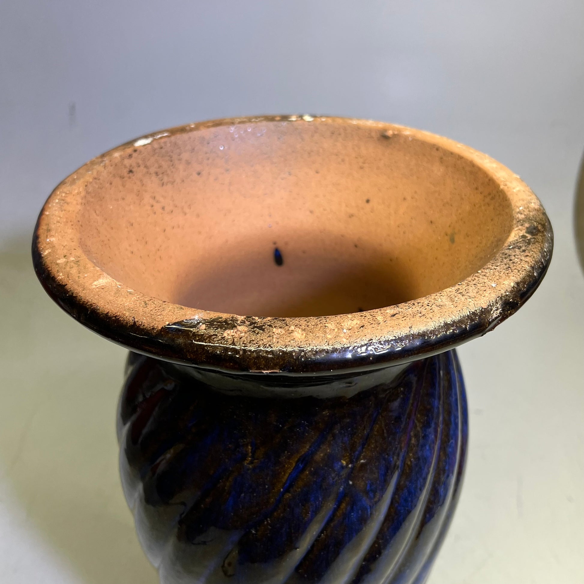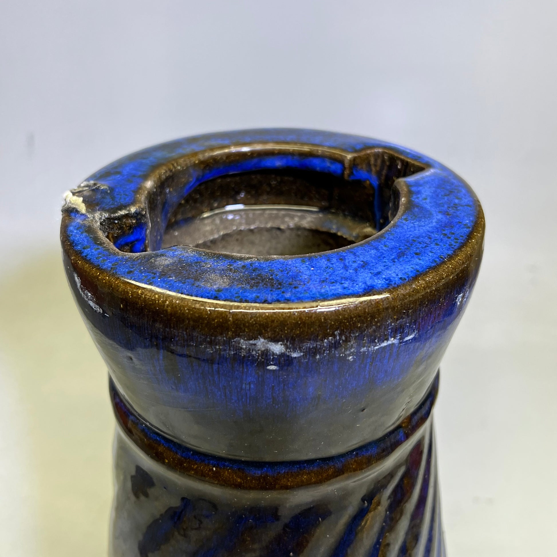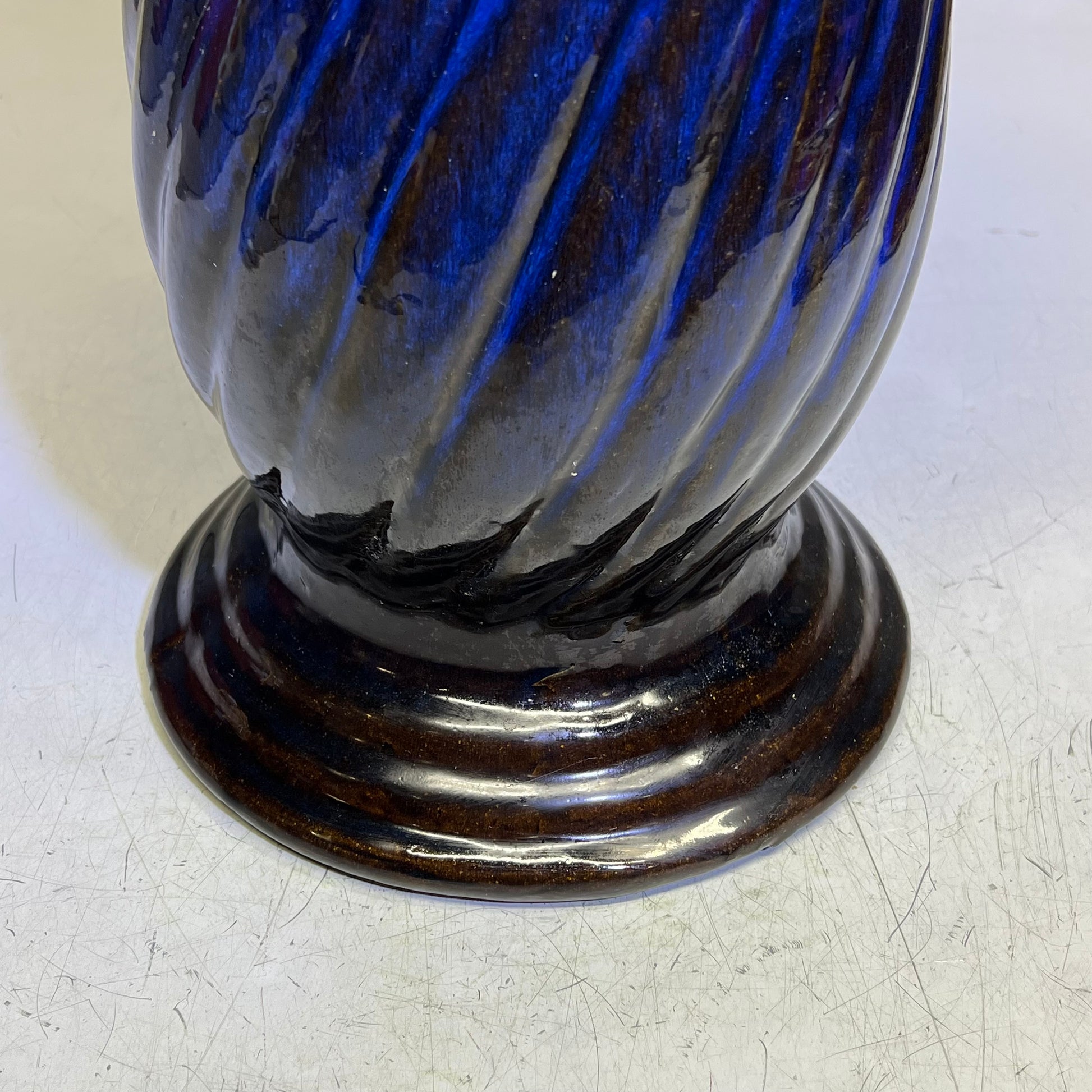 Glazed Pottery 2 Piece Swirl Stand Bird Bath 22" L x 20" Dia Deep Blue