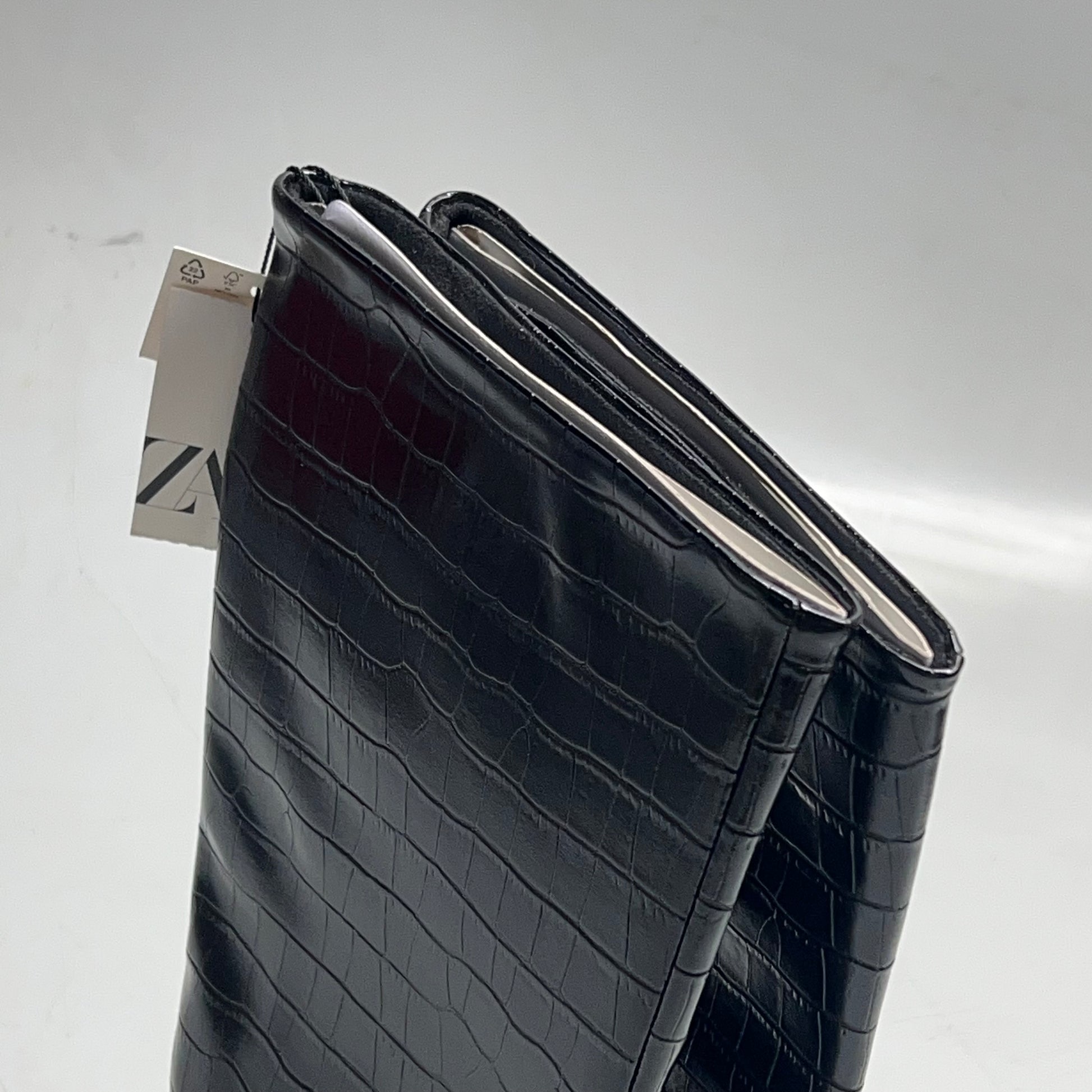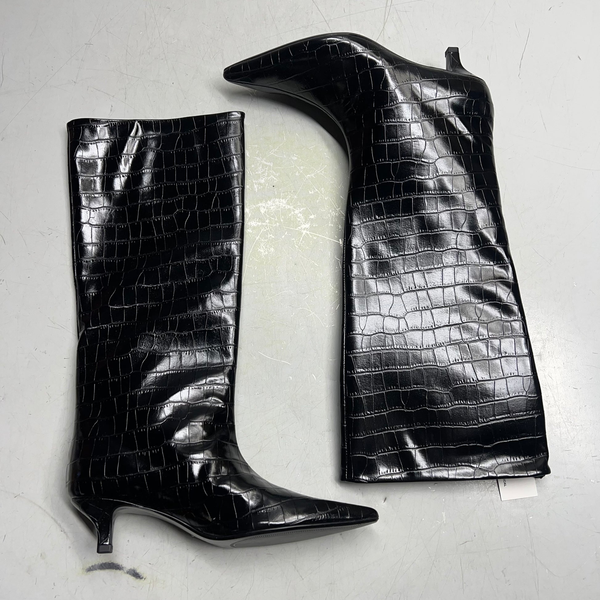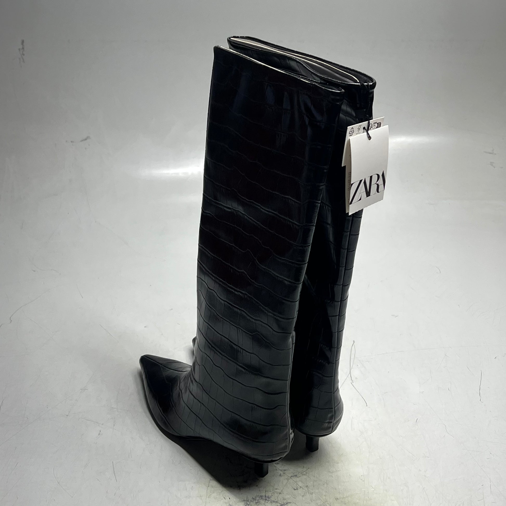 ZA@ ZARA Pointed Toe Crackled Kitten Heel Calf Boot Women's Sz 38 Black