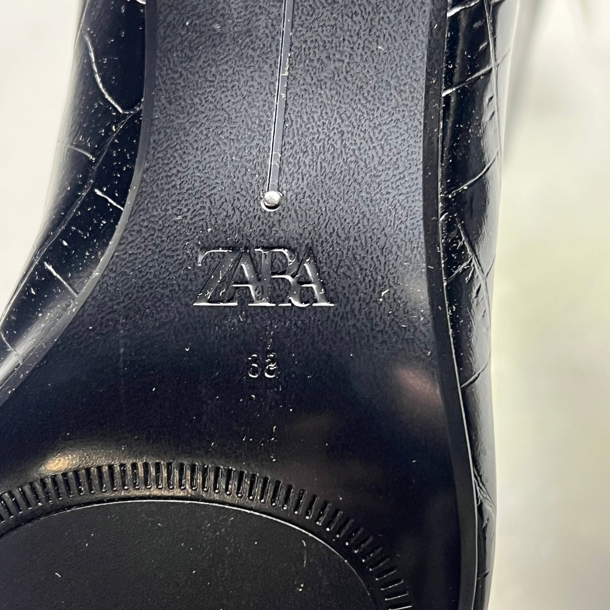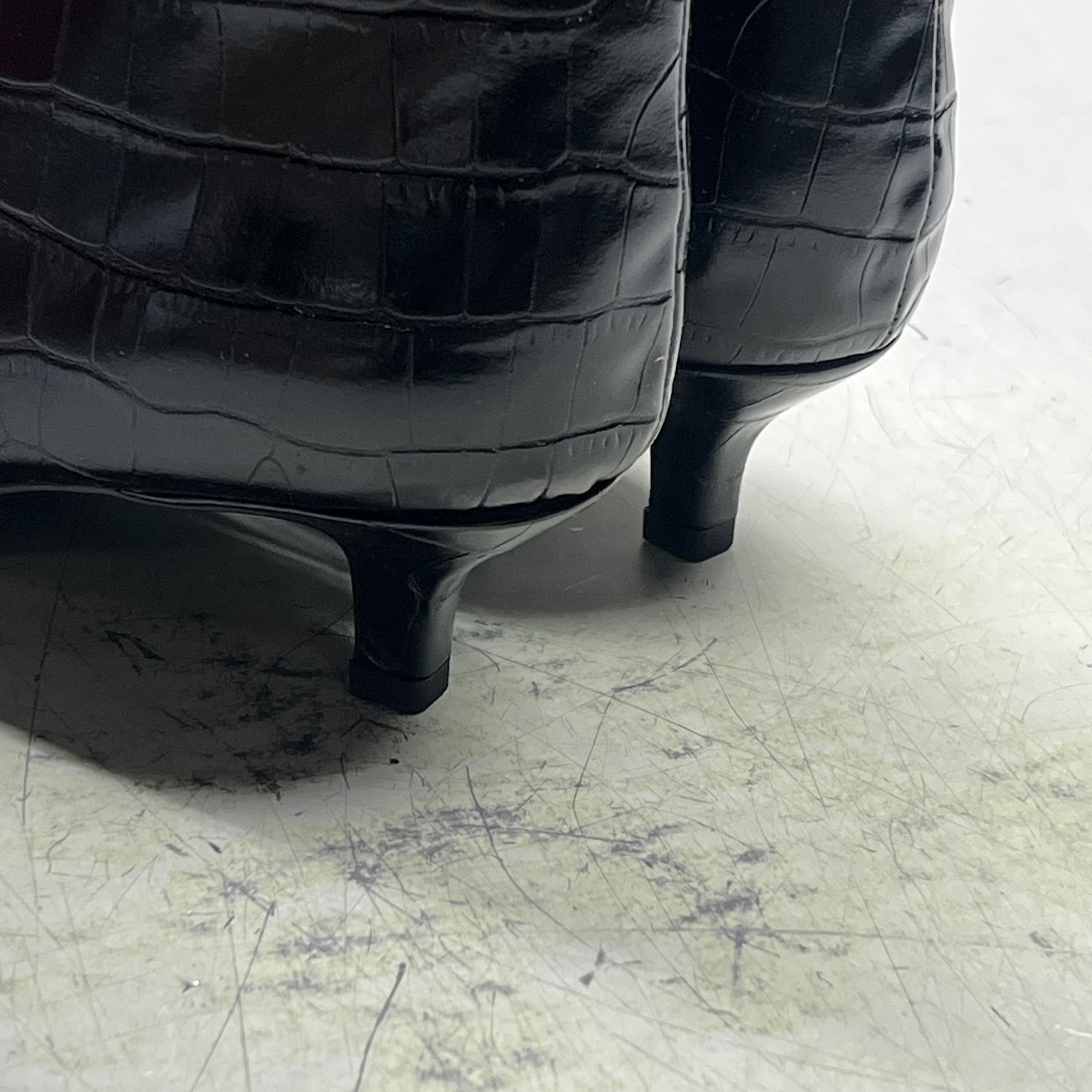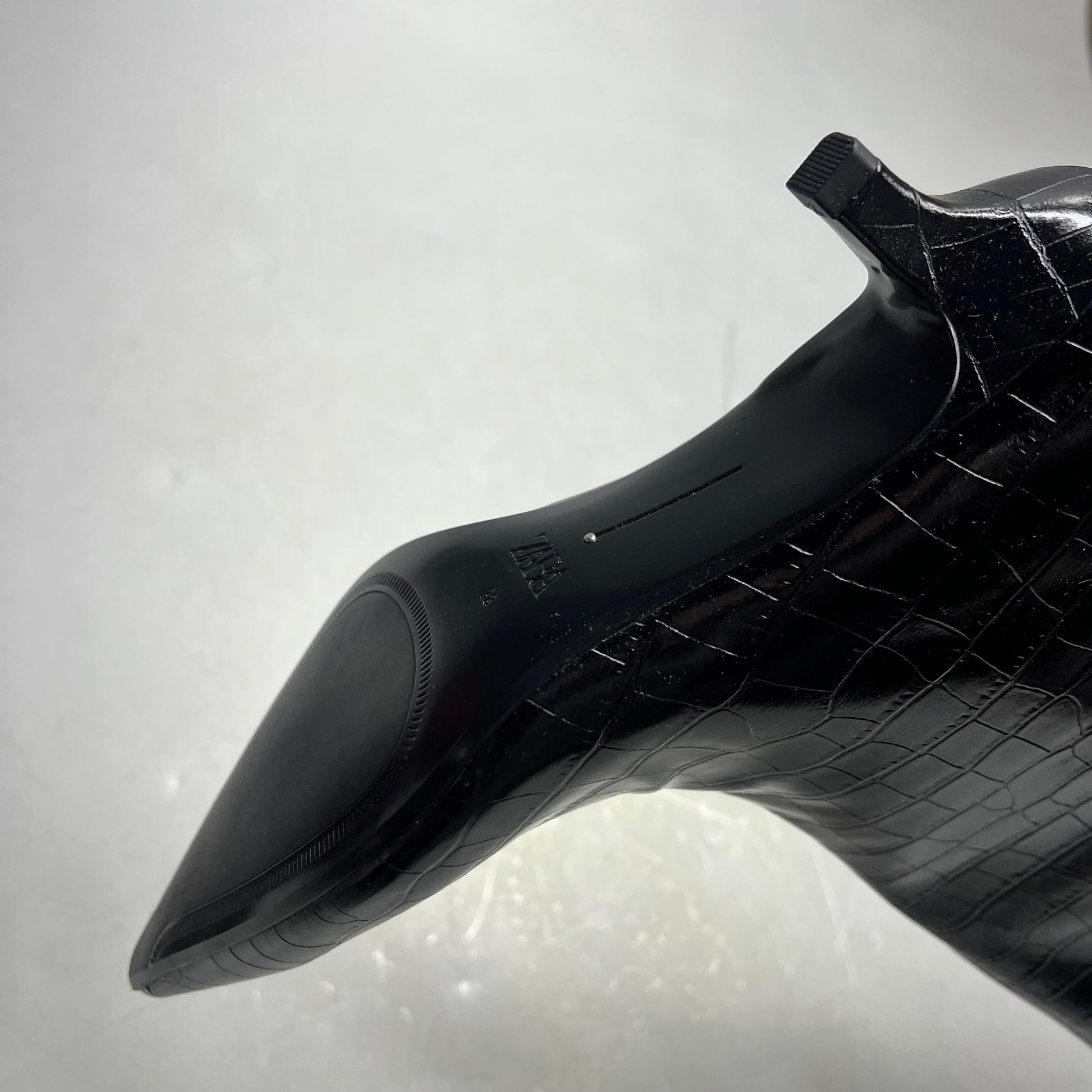 ZARA Pointed Toe Crackled Kitten Heel Calf Boot Women's Sz 38 Black