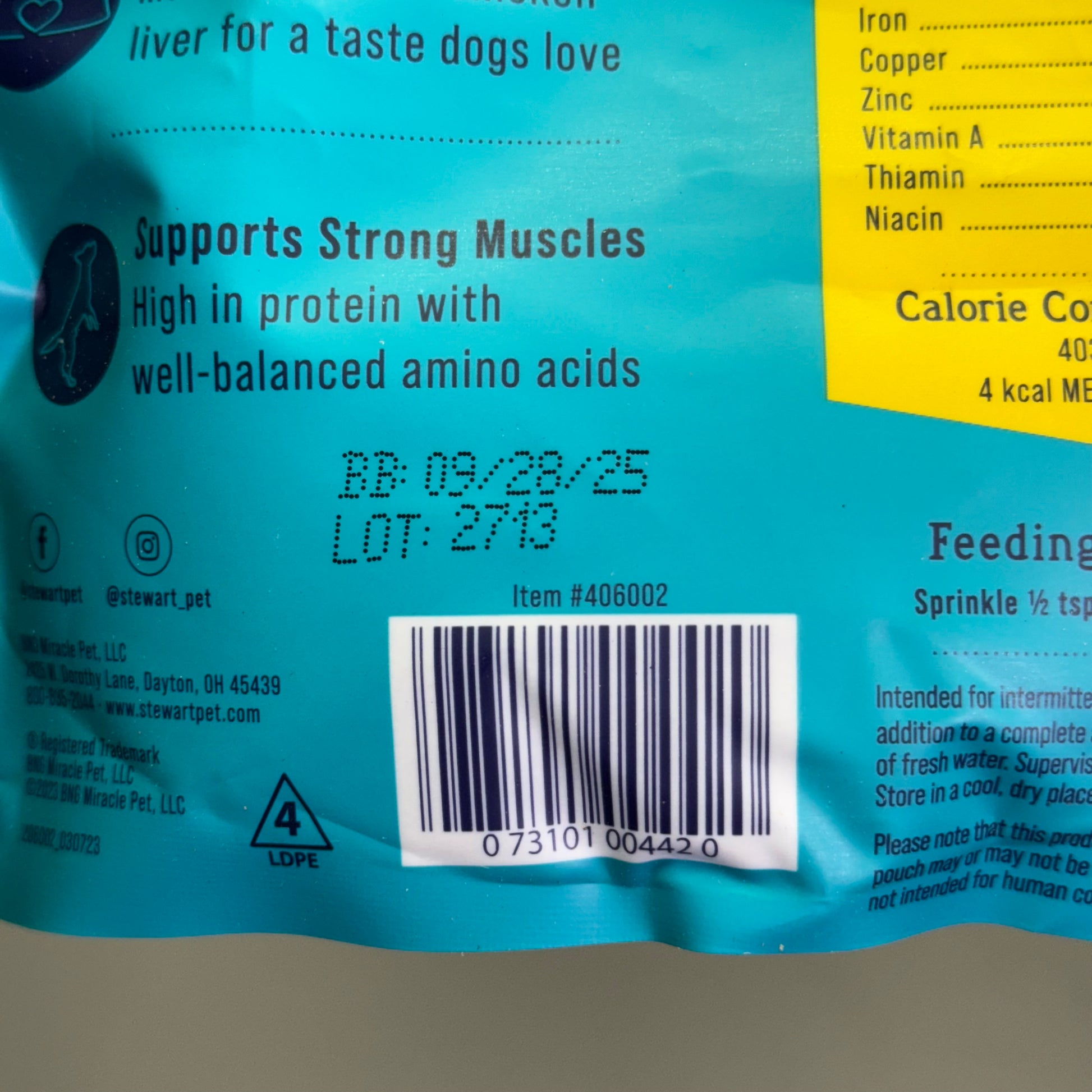 STEWART Supper Sprinkles Chicken Liver Meal Topper is a premium, high-protein addition to your pet’s food that enhances flavor and nutrition. Made with 100% natural chicken liver, it provides a rich, savory boost to your pet's meals. Each 2.5 oz packet is perfectly portioned for easy use, and with a 12-pack, you'll have plenty to keep your pet excited about mealtime. It’s a tasty and nutritious way to support your pet's diet with an extra protein-packed punch.