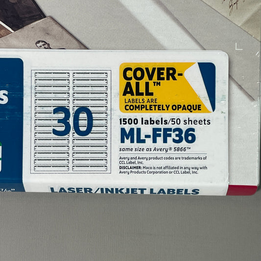 MACO (3000 Labels) Bright White Label Stock 1" x 2 5/8" White ML-3000
