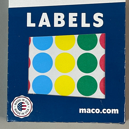 MACO Round White (6 PACK) Color-Coding Labels 3/4” Dia. 6000 Labels MR-1212