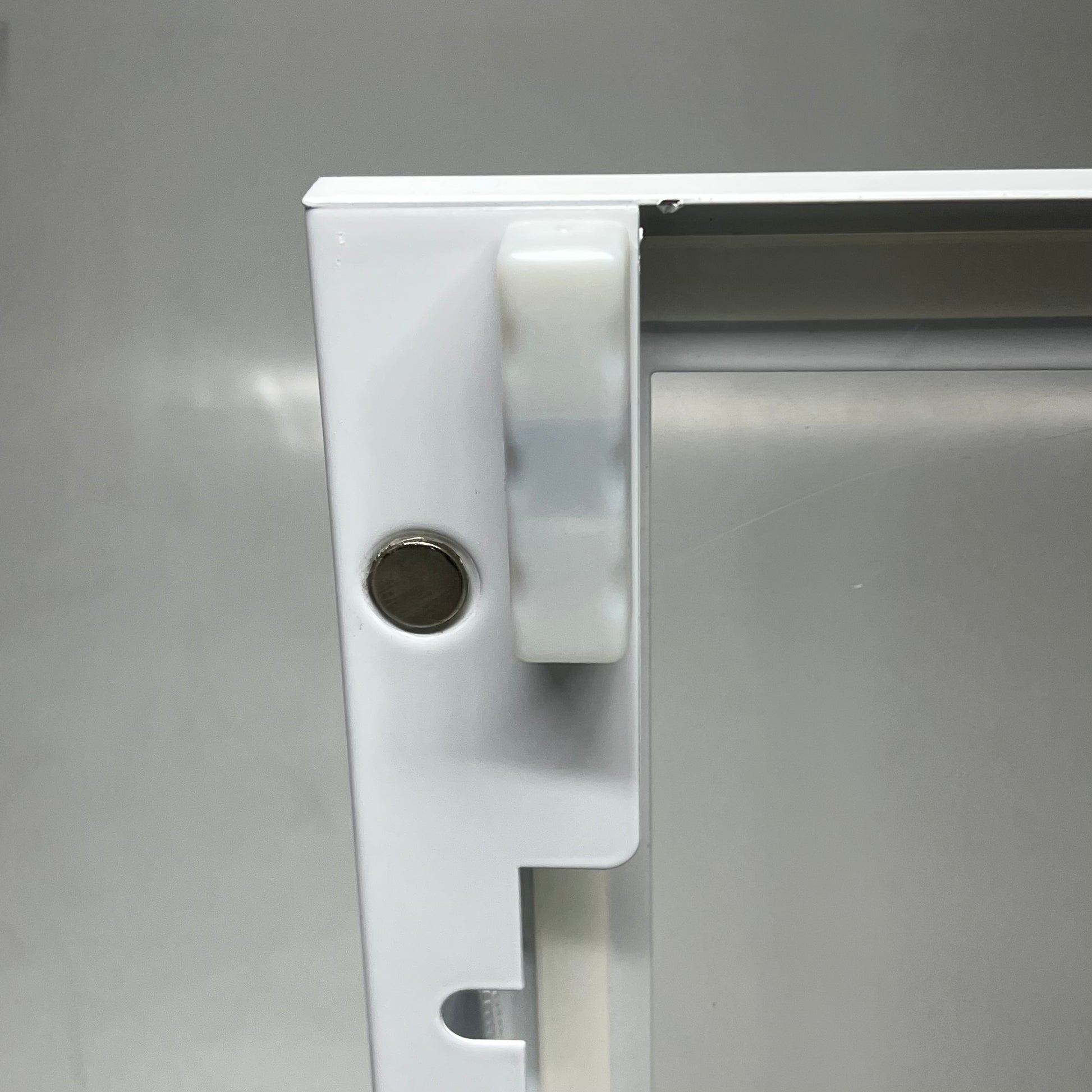 Description: Surface mounted cabinet that fits most all defibrilators (AED). Constructed of strong, high quality metal to create a seamless look. This cabinet is ideal for office buildings and public spaces. White Powder Coated Exterior. Logo Engraved Aluminum handle grip. Includes Acoustic Alarm and all mounting materials