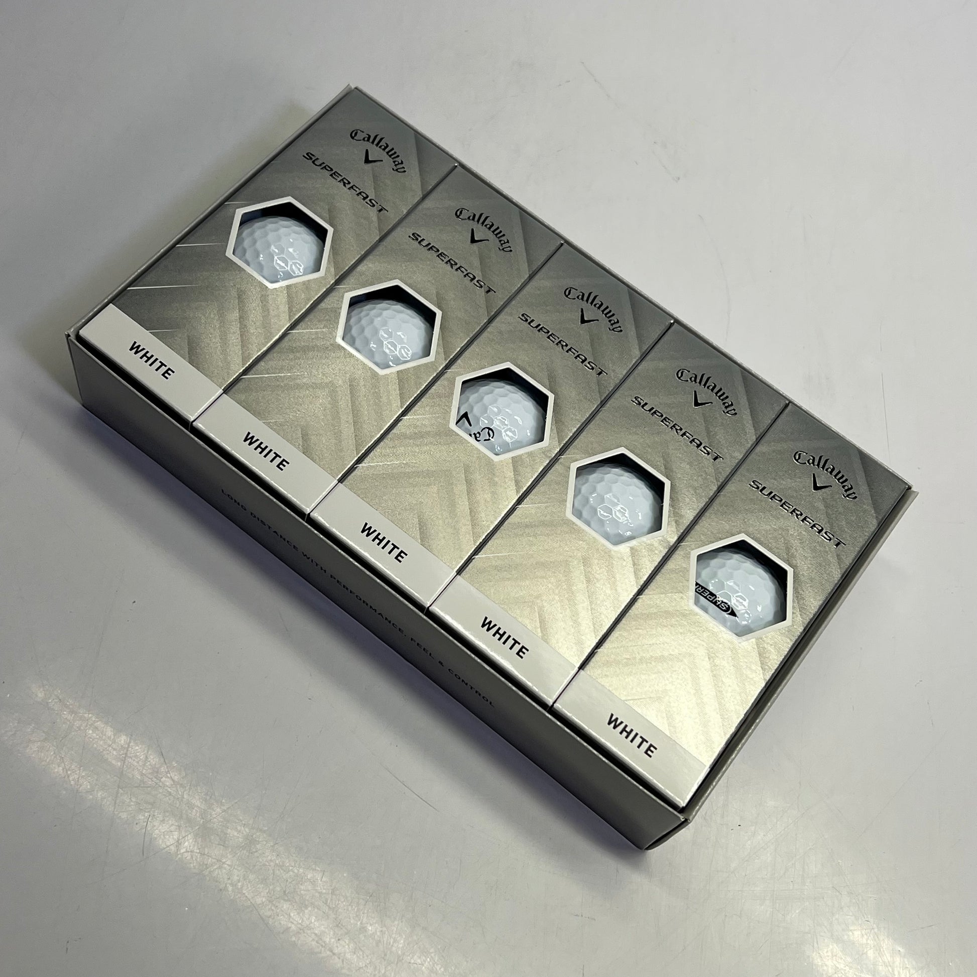 Description: The new Superfast Golf Balls leverage a high-speed core, cover, and HEX Aerodynamic technologies to create maximum distance through the bag. Led by our hybrid cover, Superfast promotes increased ball speed while also delivering tee-to-green performance with great feel, optimized trajectory, and control.