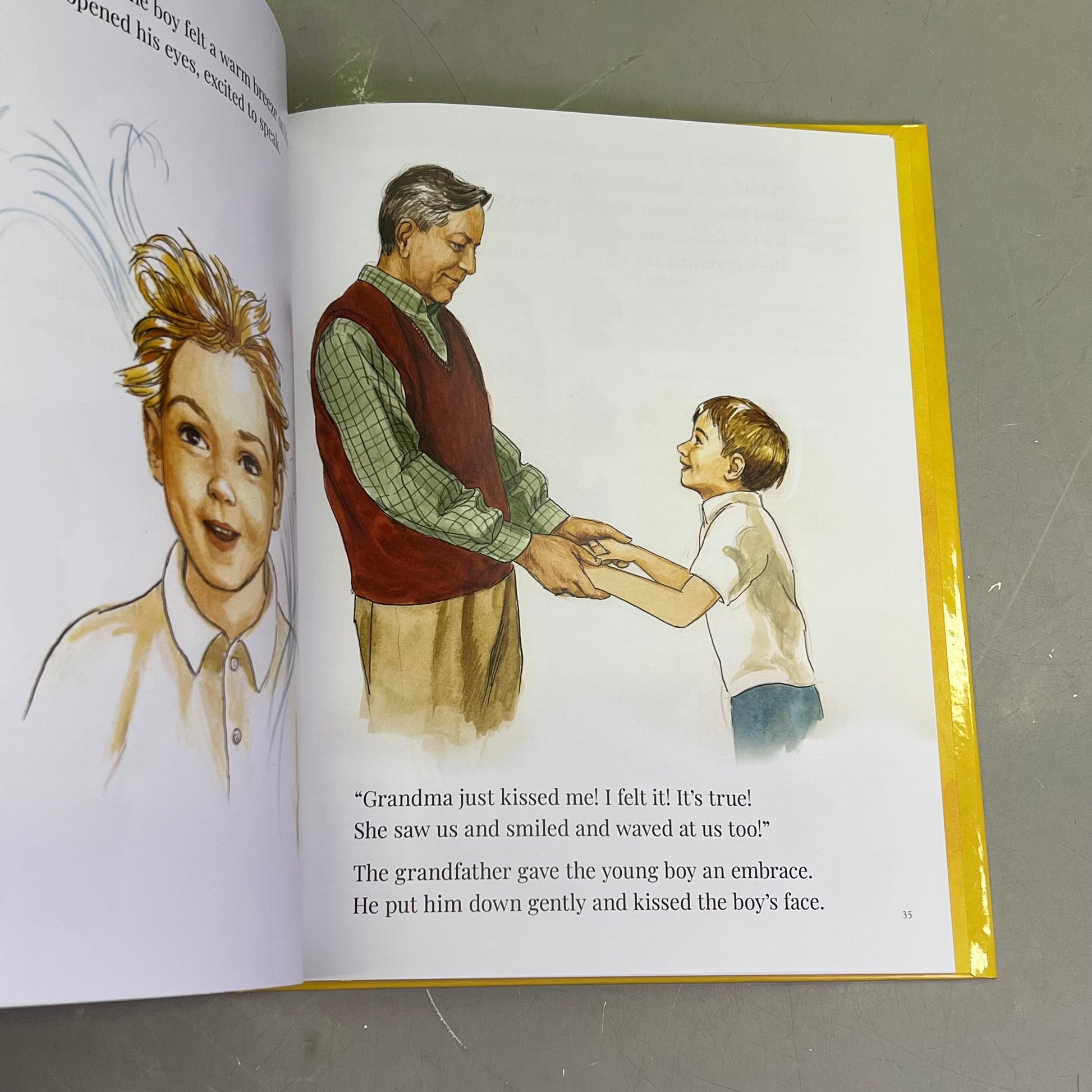 tells the poignant story of a little boy who is sad because his grandmother has passed away. It is Christmastime, and the boy asks his grandfather where his grandmother might be. The grandfather responds by telling the boy his fondest hope—that his grandmother is in Heaven.