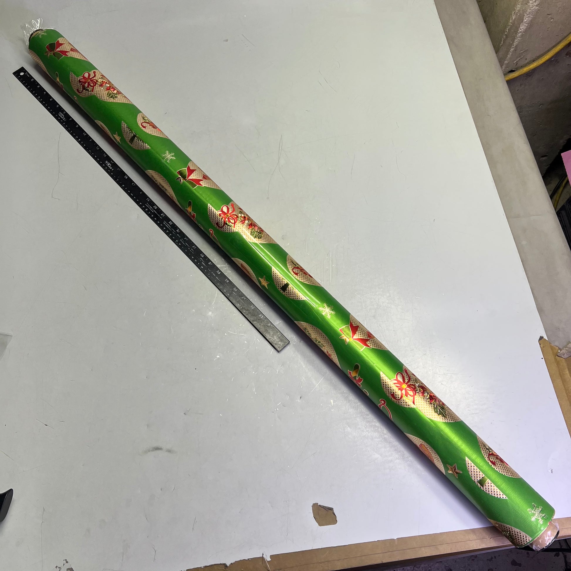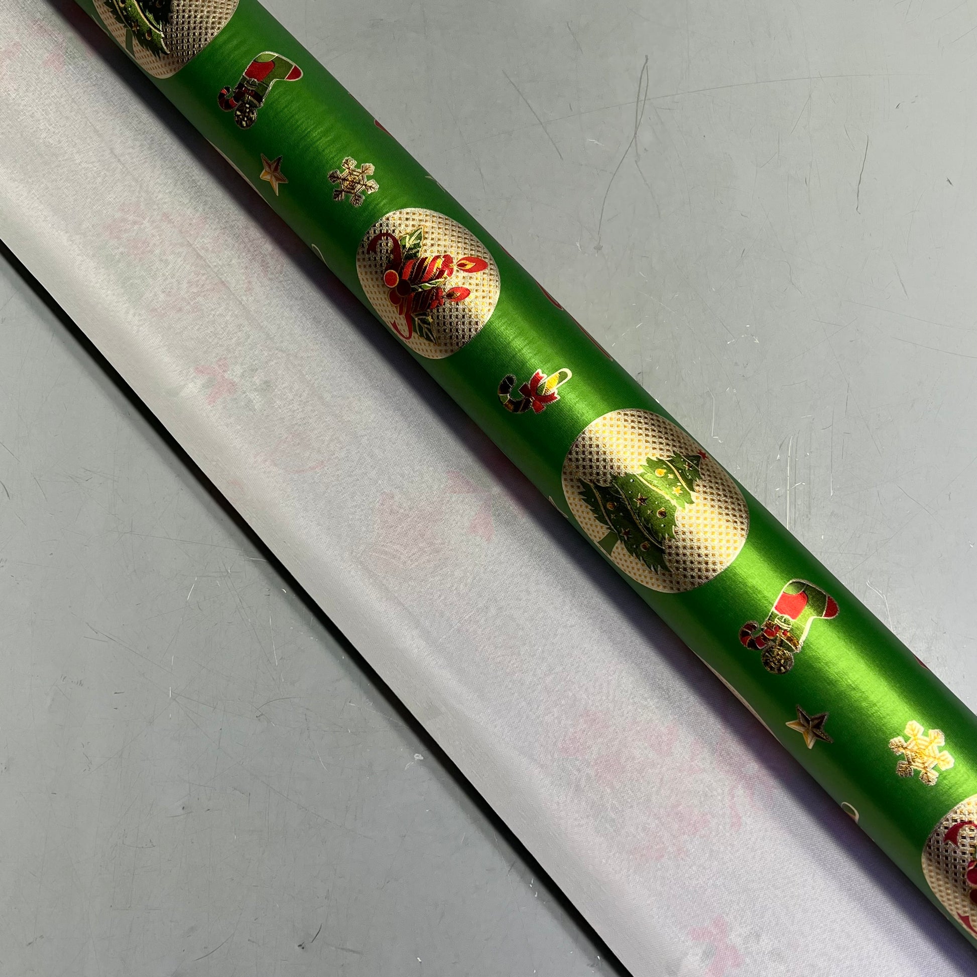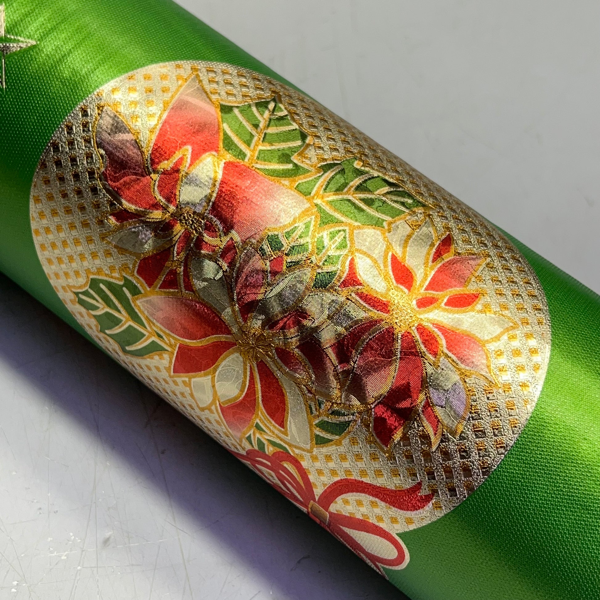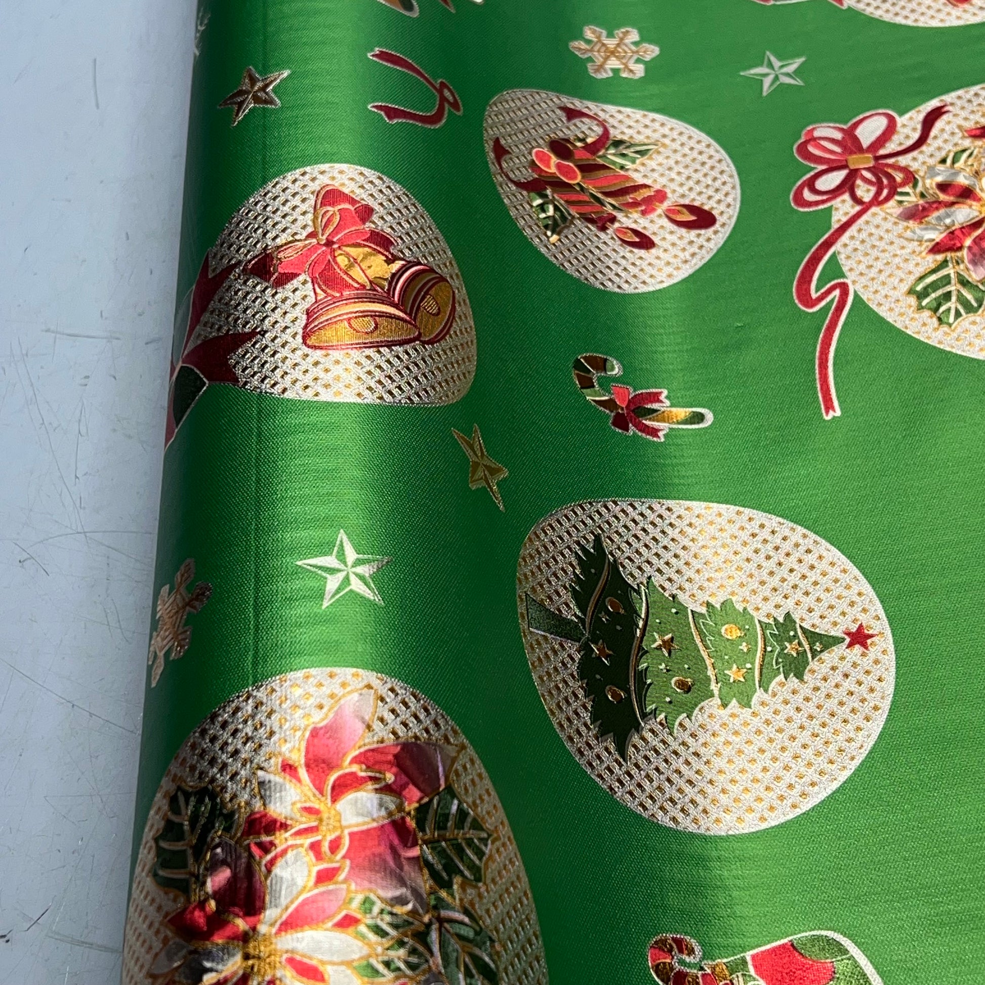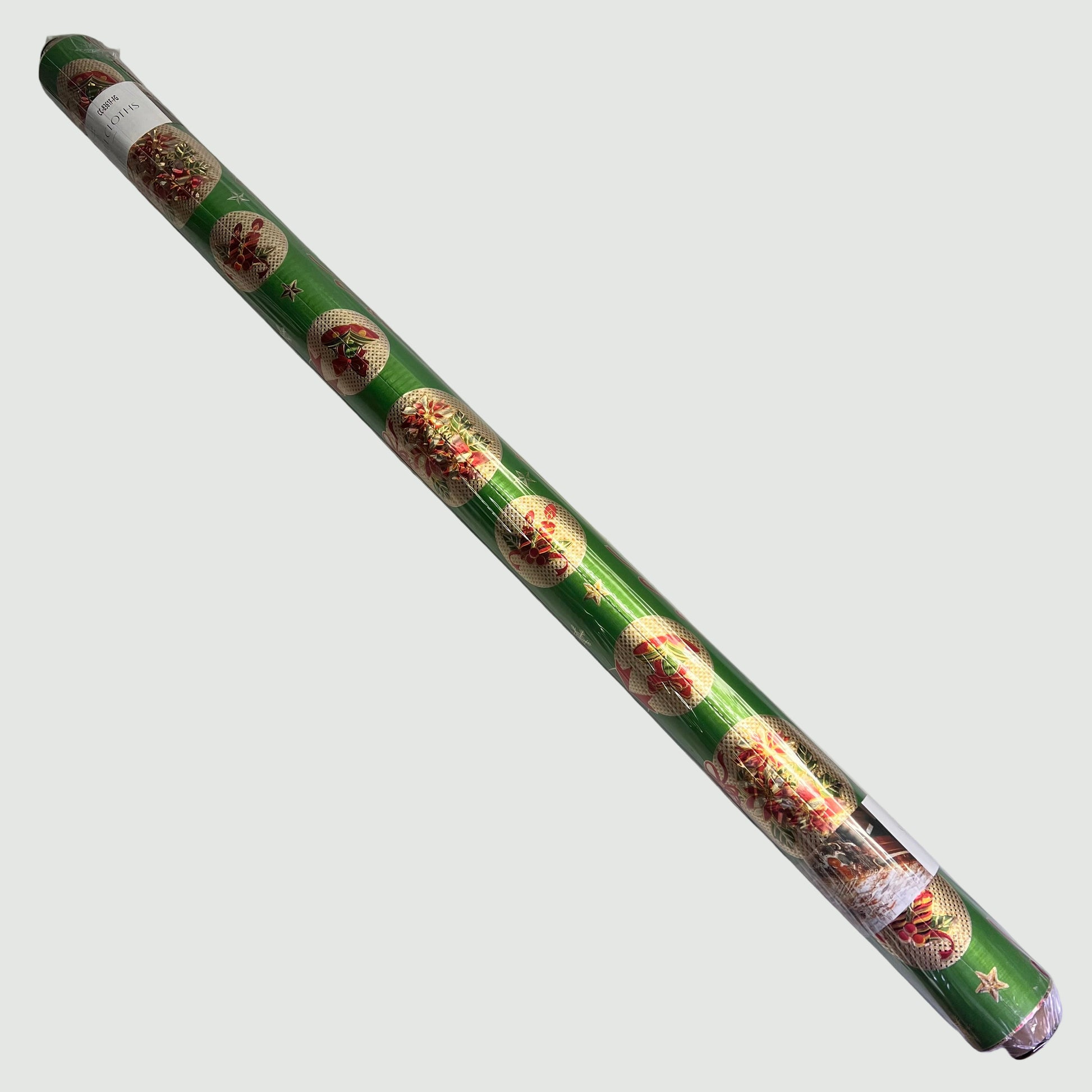 Christmas Ornaments Poinsettia & Bells Vinyl Tablecloth 54"x60' Shine Green
