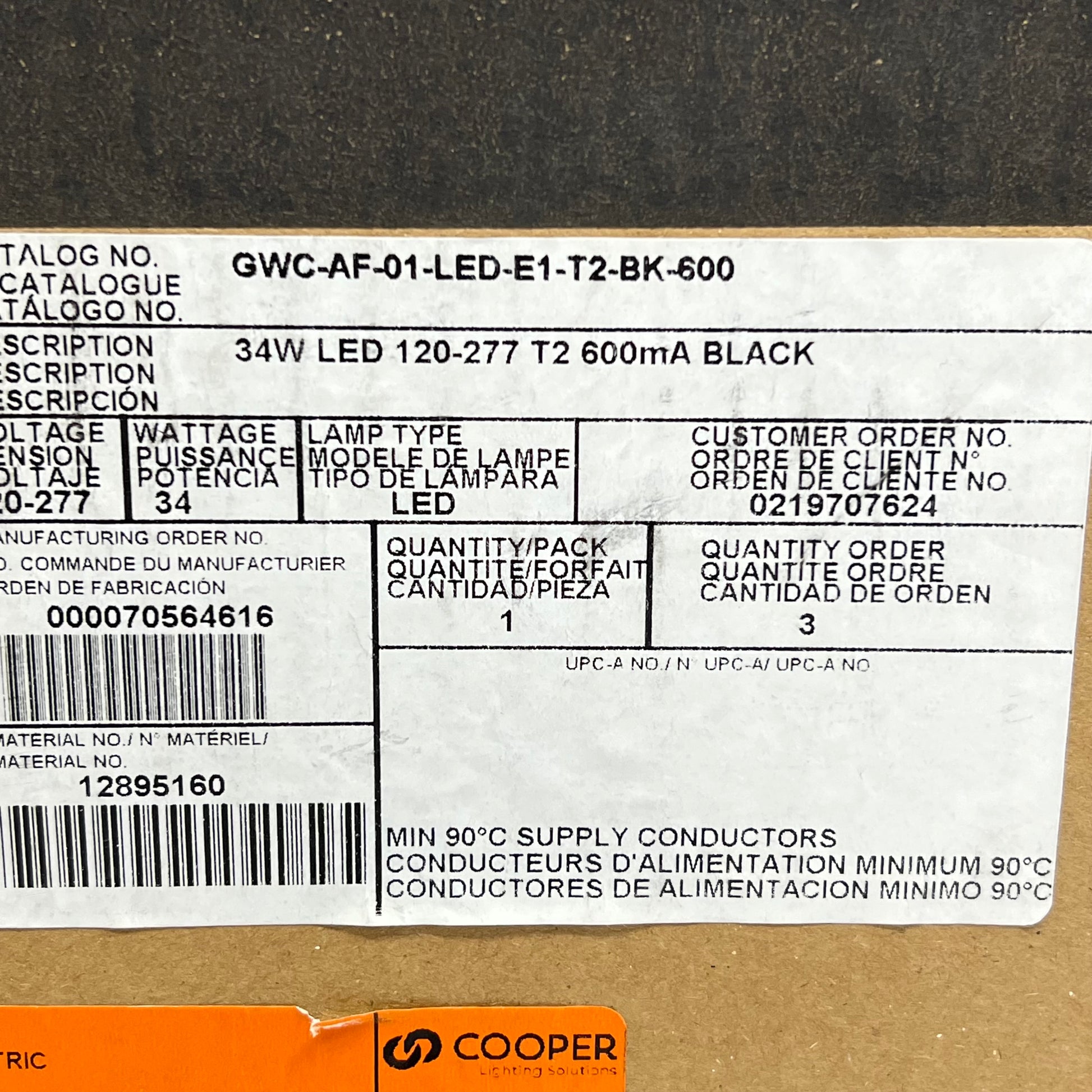 MPN: GWC-AF-01-LED-E1-T2-BK-600