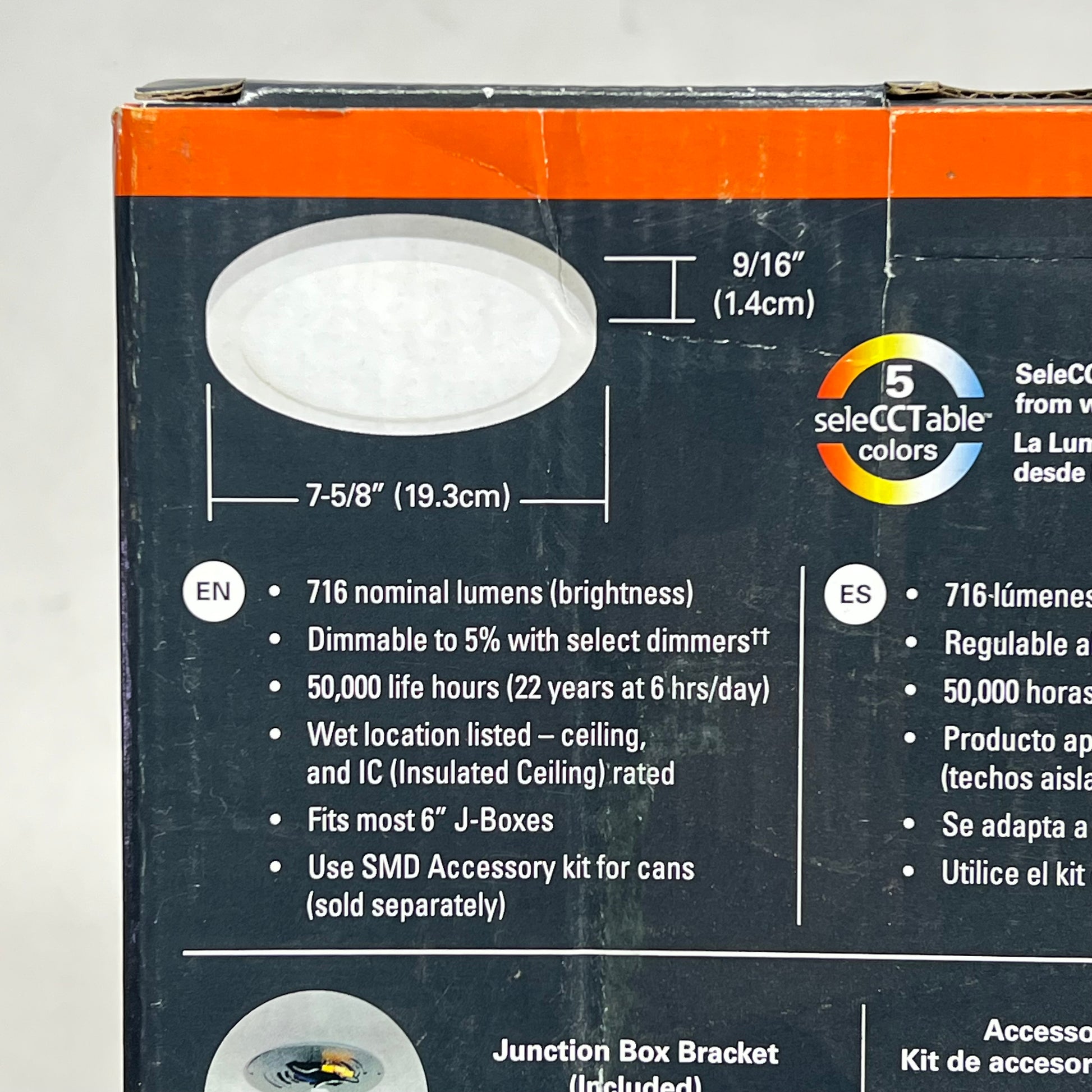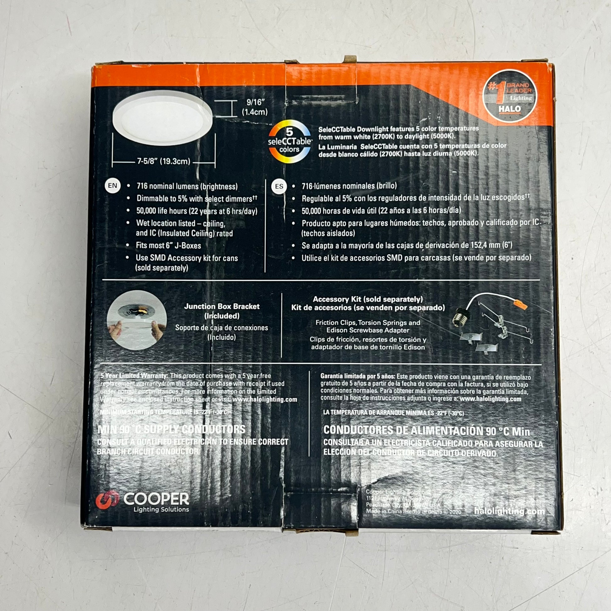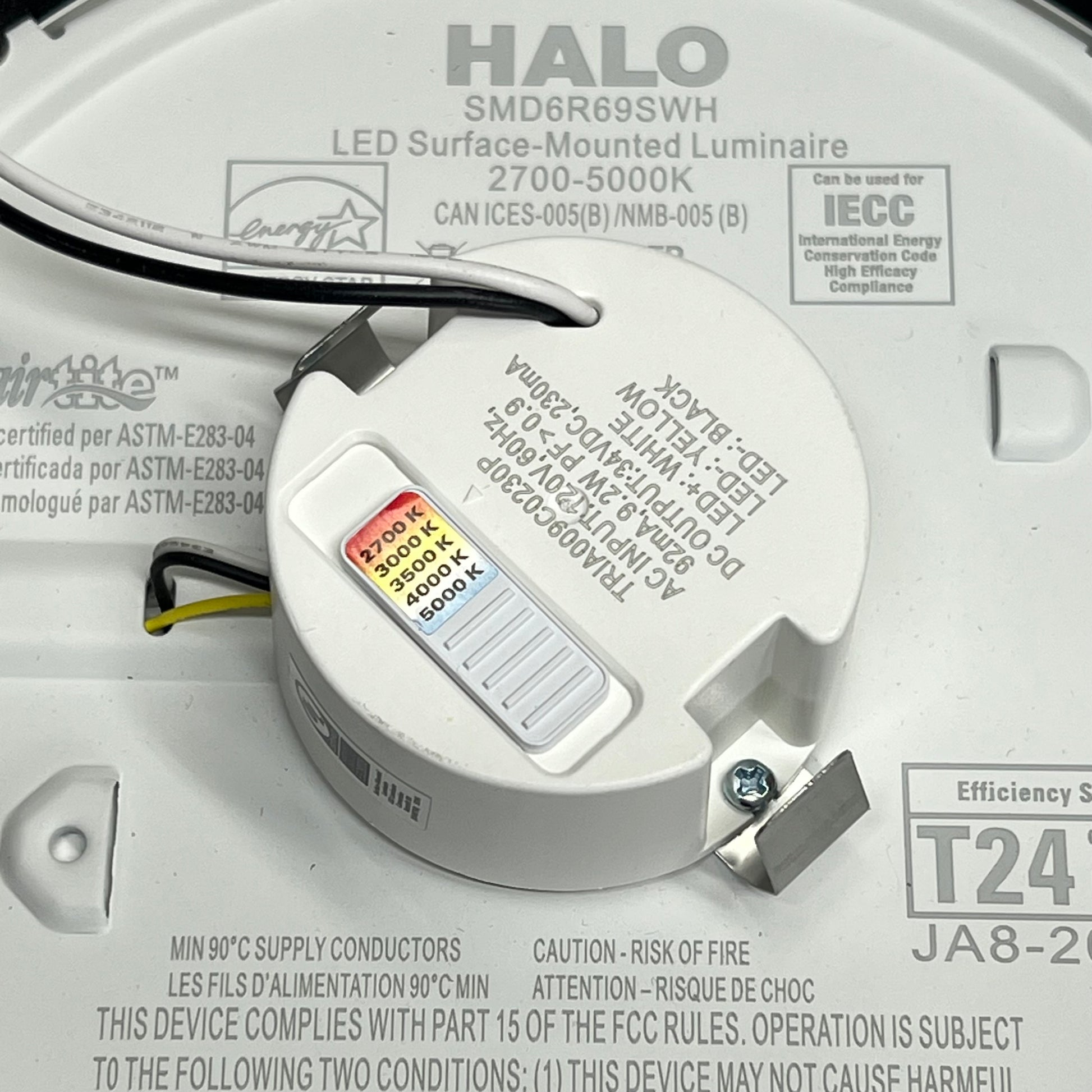 2700K, 3000K, 3500K, 4000K or 5000K Field Selectable CCT, CRI: 90