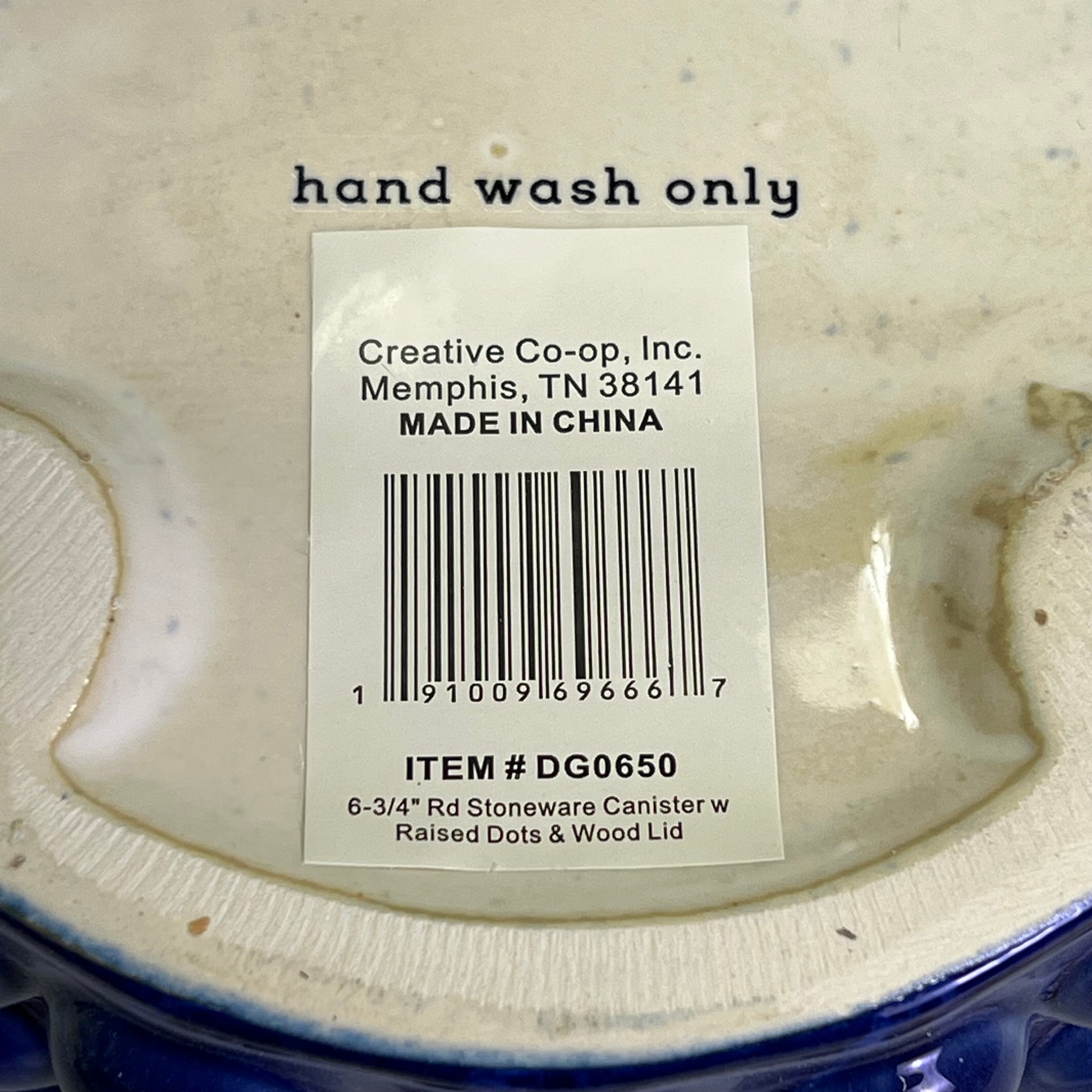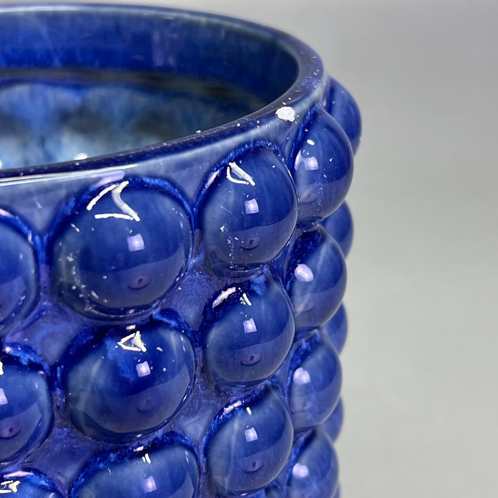 A large, stunning stoneware canister featuring a navy reactive glaze and raised dot design