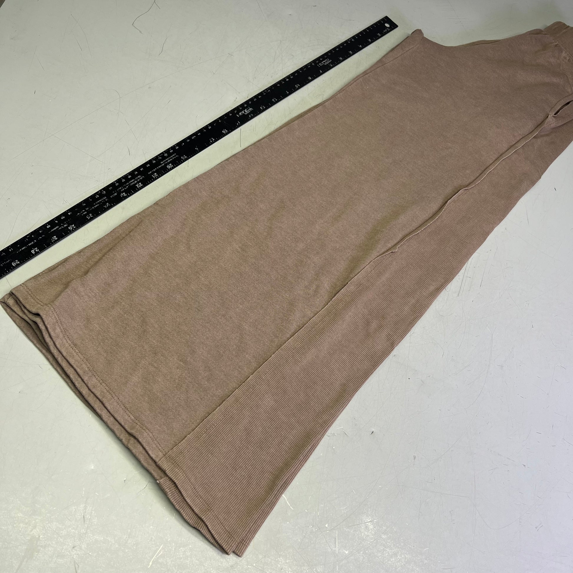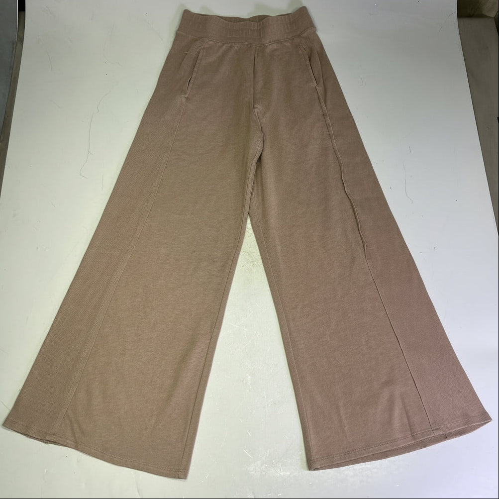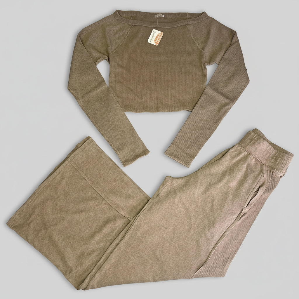 Description: Ribbed knit fabrication with cropped long sleeve top and wide-leg pants for a relaxed, ready-for-anything look.