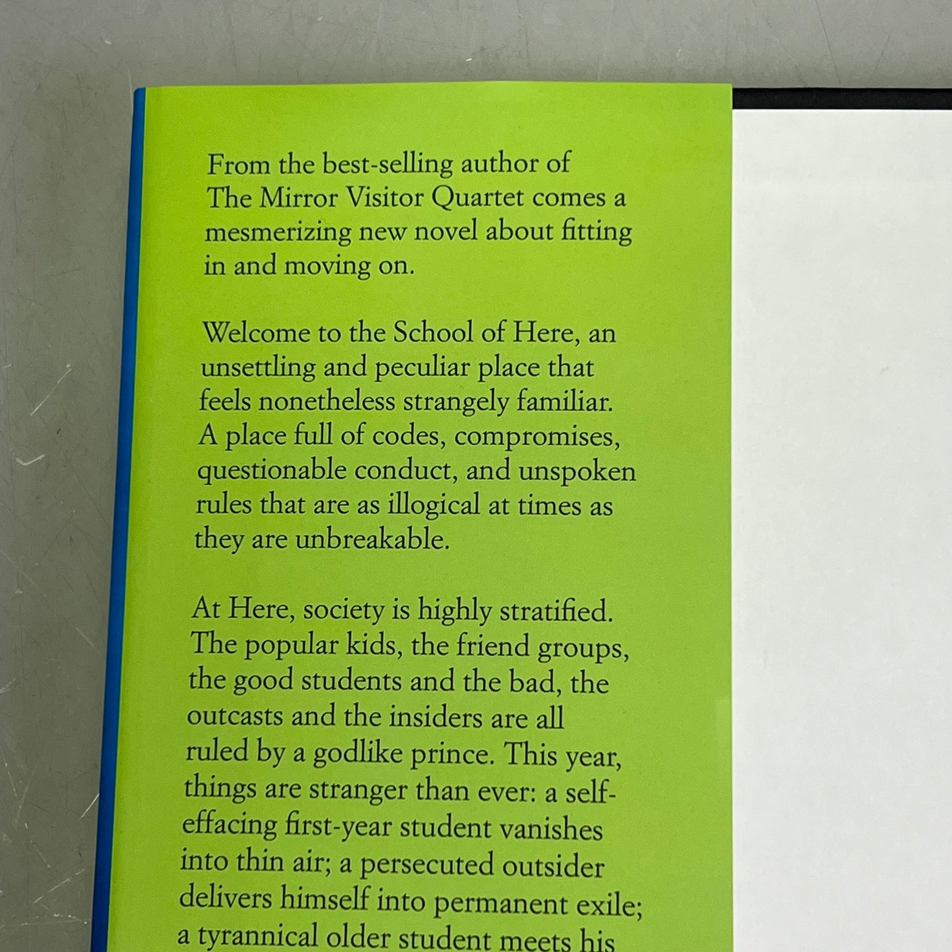 Welcome to the School of Here, an unsettling and peculiar place that is nonetheless familiar to us all. A place full of codes and unspoken rules that are passed down from year to year.