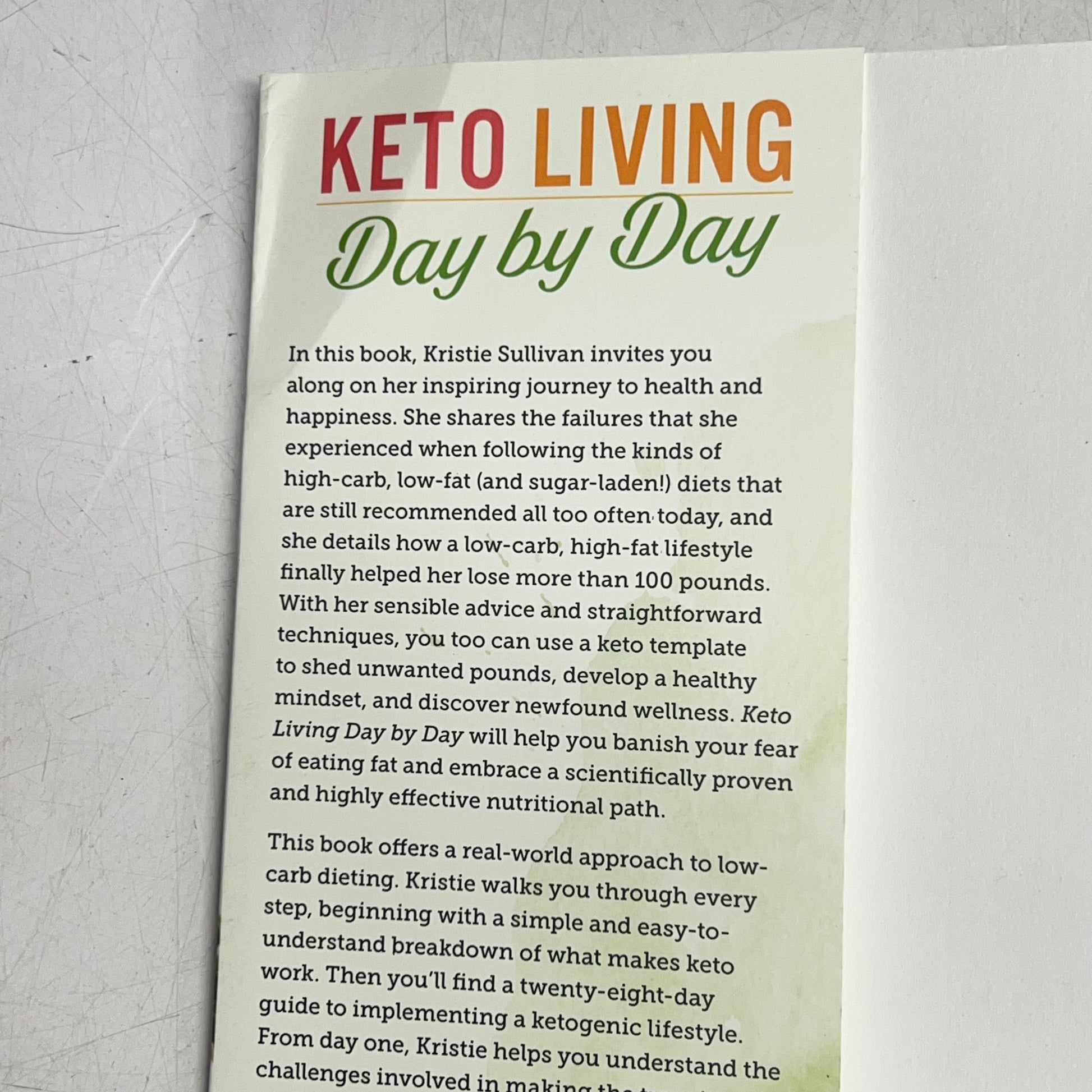 Summary: In her new book, Keto Living Day by Day, Kristie Sullivan brings you along on her inspiring journey to health and happiness through adopting a low-carb, high-fat lifestyle. She shares the failures she experienced when using today’s overly prescribed high-carb, low-fat (and also sugar-laden) diets and details how the ketogenic diet helped her lose more than 100 pounds! Kristie hopes that her story will inspire you to take charge of your own life and find your unique path to wellness. With her approachable and sensible philosophy and techniques, you too can use the keto template to overcome challenges, develop a truly healthy mindset, and shed unwanted pounds. Keto Living Day by Day will help you banish your fear of eating fat and embrace a scientifically proven and highly effective nutritional path.